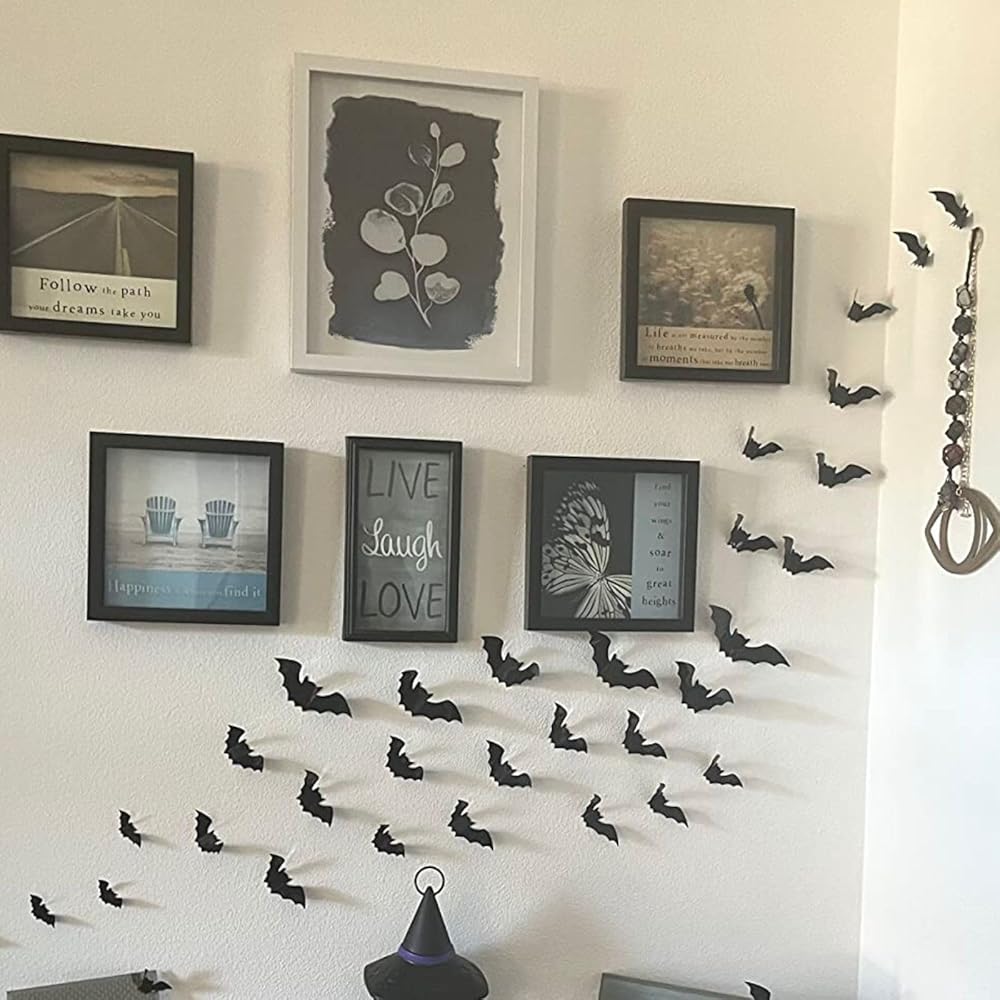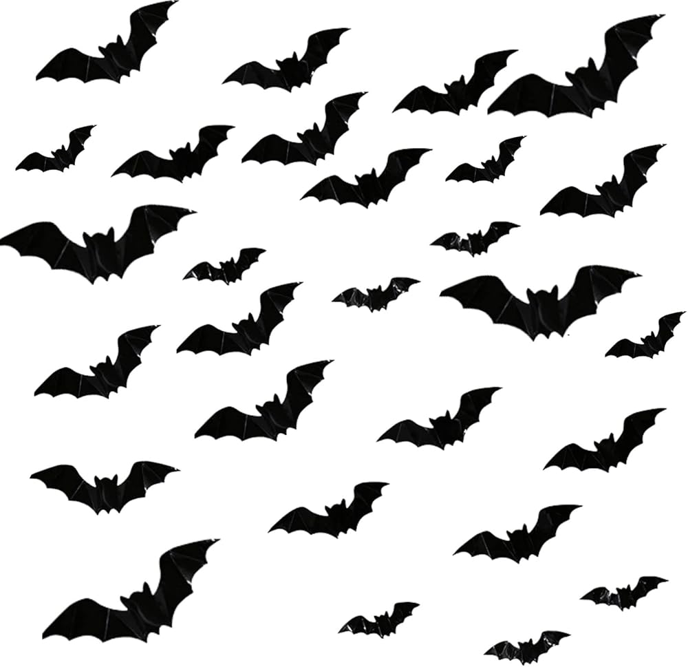 Bats packed flat. DIY them into different wing angles. Easy to stick. Fit any smooth & dry surface like painted wallglass ile (Please clean the dust before applying).
