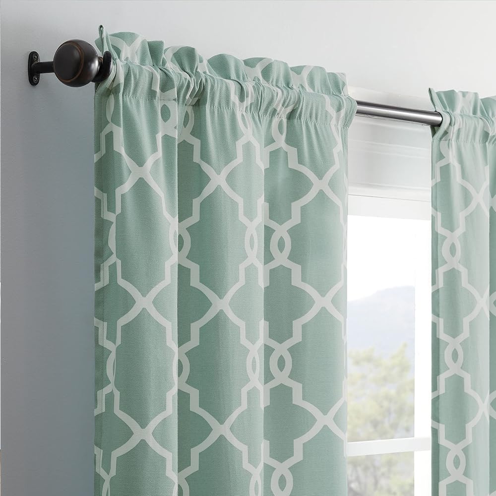 Purchasing window curtains just got easier. Update any living space with decorative pairs to go vickery curtain panels. Perfect for the living room, dining room or bedroom, these versatile curtains are an easy and inexpensive way to add color and style when decorating your home. Panels have a modern aesthetic and feature rich colors with a trellis print. Each package includes two easy-to-hang rod pocket curtain panels, each measuring 28 inches wide by choice of 63 or 84 inches long. 2 inch rod pockets are recommended with no greater than a 1 inch rod for maximum movement. 1.5 inch header adds decorative style. Curtain rod sold separately. Easy care, machine washable. Poly/cotton blend