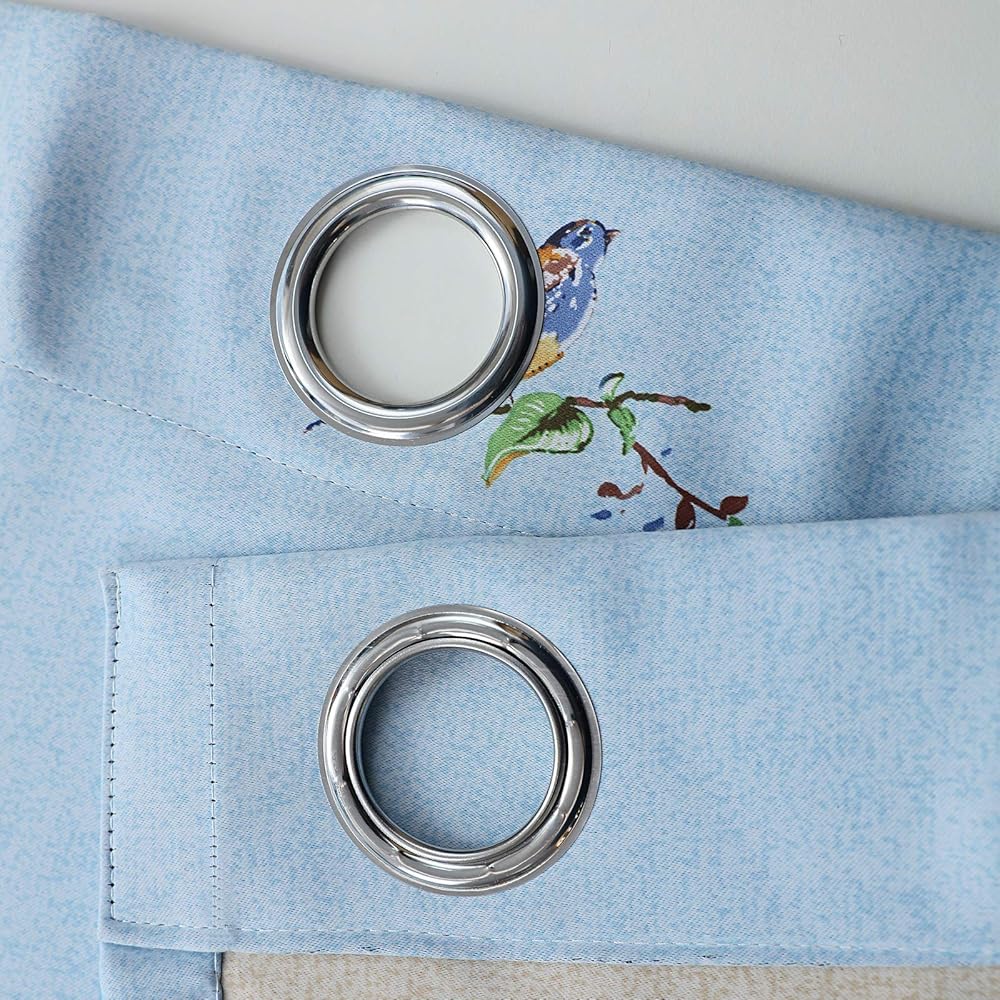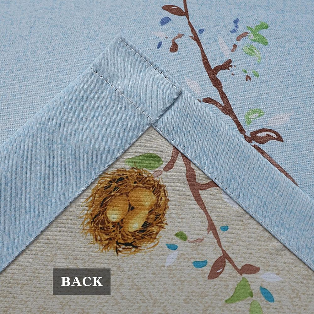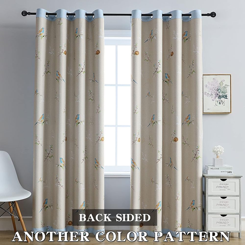 UNIQUE DOUBLE-SIDED DESIGN:The elegant patterns of blue-yellow mustard birds with green-coffee tree leaves are vivid,which add vitality to the family and bid farewell to the monotonous style. One side of the curtain is blue, and the other side is khaki, which can be used for the living room, bedroom, kids room,kitchen ,restaurants, farmhouses, offices,partition and suites.