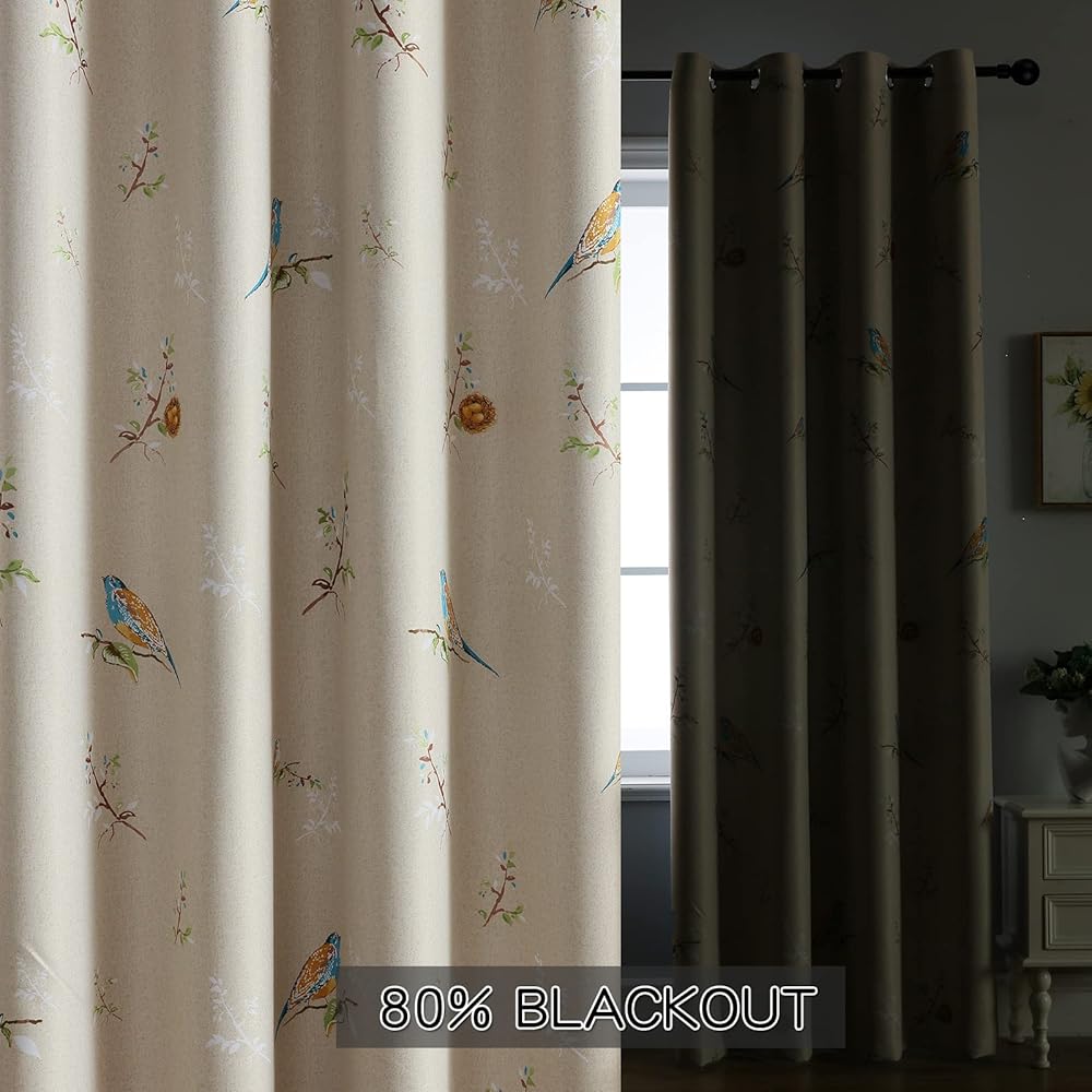 SUOUO Birds Blackout Curtains for Bedroom 84 inches Long Farmhouse Patterned Floral Window Drapes for Living Room 2 Panels Khaki