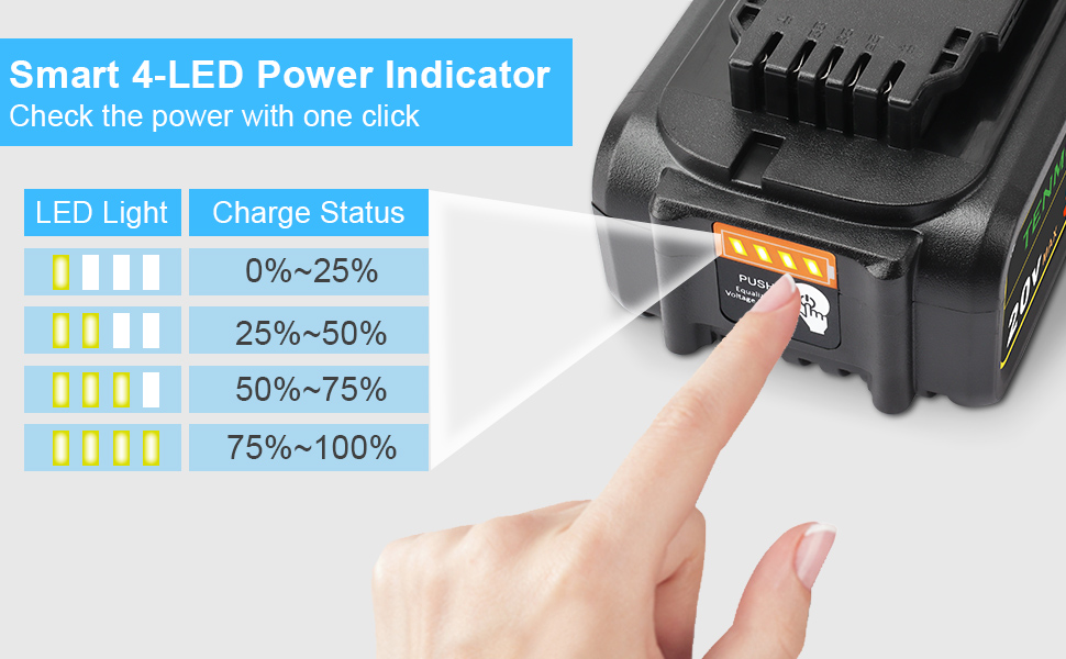 - [High Performance] High Capacity battery provide up to 3X more run-time compared 2.0AH, our 20V 6.0Ah Offers Long Lasting Performance and Durability.