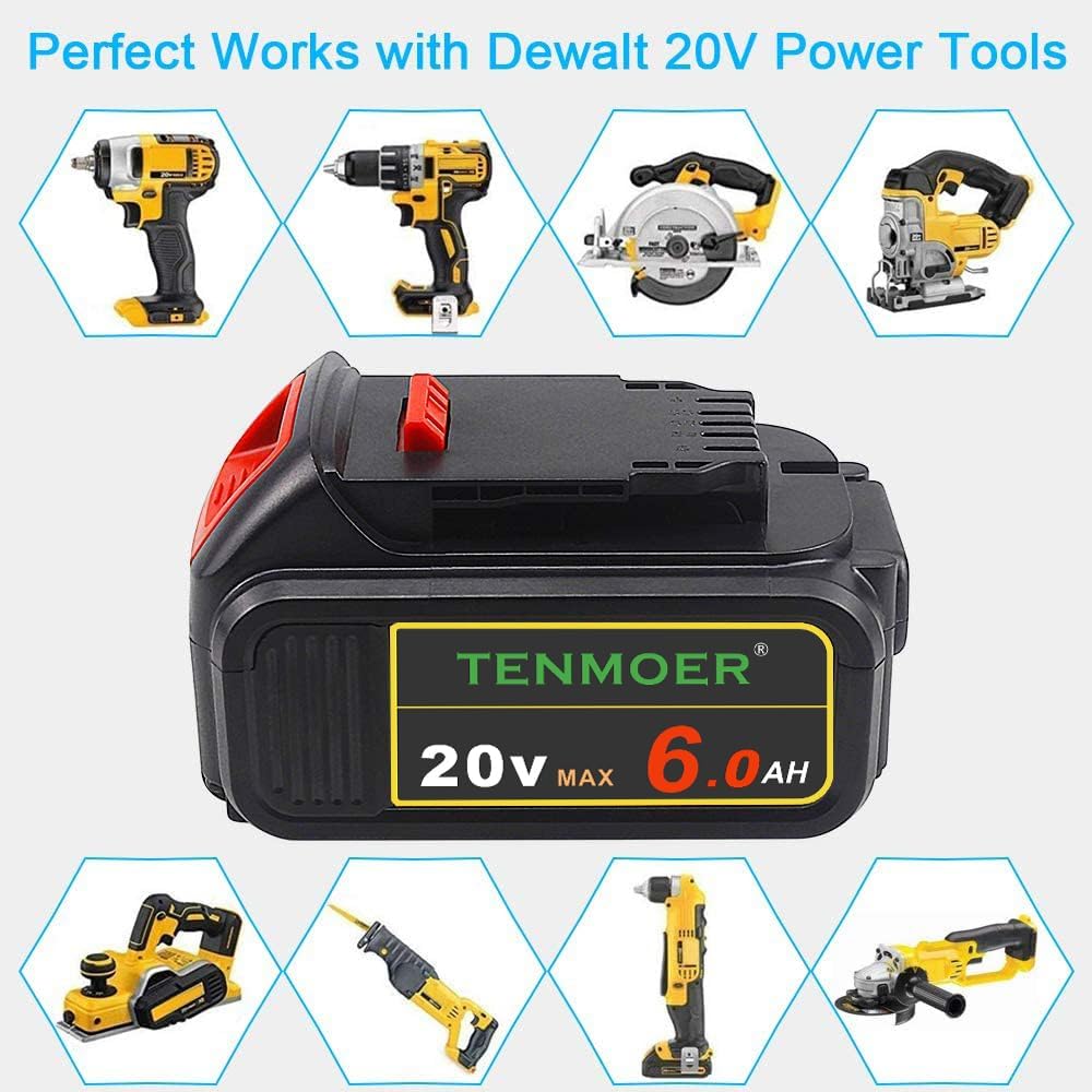 TENMOER 6.0Ah Compatible with Dewalt 20V 6.0Ah Battery Replacement for Dewalt 20V Batteries DCB203 DCB204 DCB206
