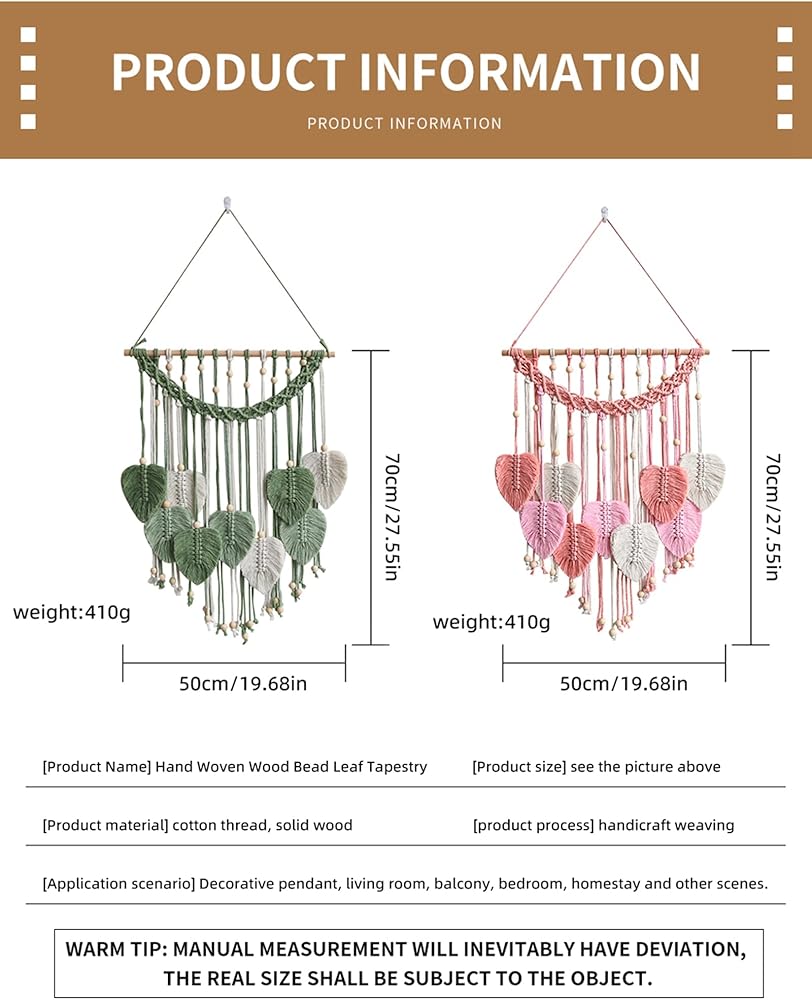 Wall Hanging Leaves 19x27" Large Chic Feather Wall Hanging Boho Wall Decor, Handmade Yarn Woven Wall Art Leaf Tapestry for Bedroom, Living Room, Hotel