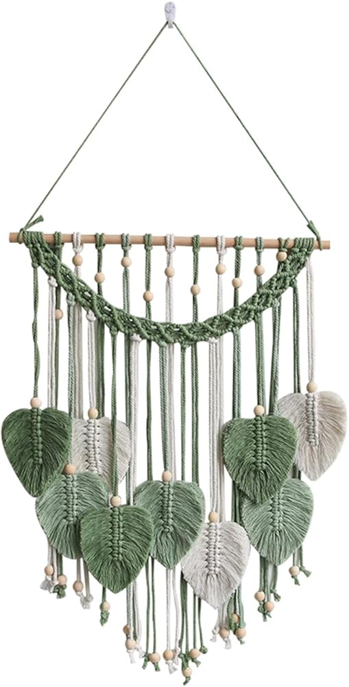 أوراق حائط معلقة من Cutey May مقاس 19x27 كبيرة الحجم من الريش الأنيق للتعليق على الحائط من Boho، نسيج مصنوع يدويًا من خيوط الغزل المنسوجة على شكل أوراق فنية لغرفة النوم، وغرفة المعيشة، والفندق (أخضر)