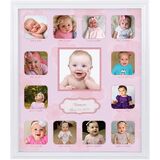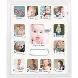 First Year Collage Frame, Baby's First Year 12 Month Picture Frames, Baby Keepsake Photo Frame for Newborn Boy Babies Registry Milestone Moments, Gift for Mom to Be or Expecting Parents, White