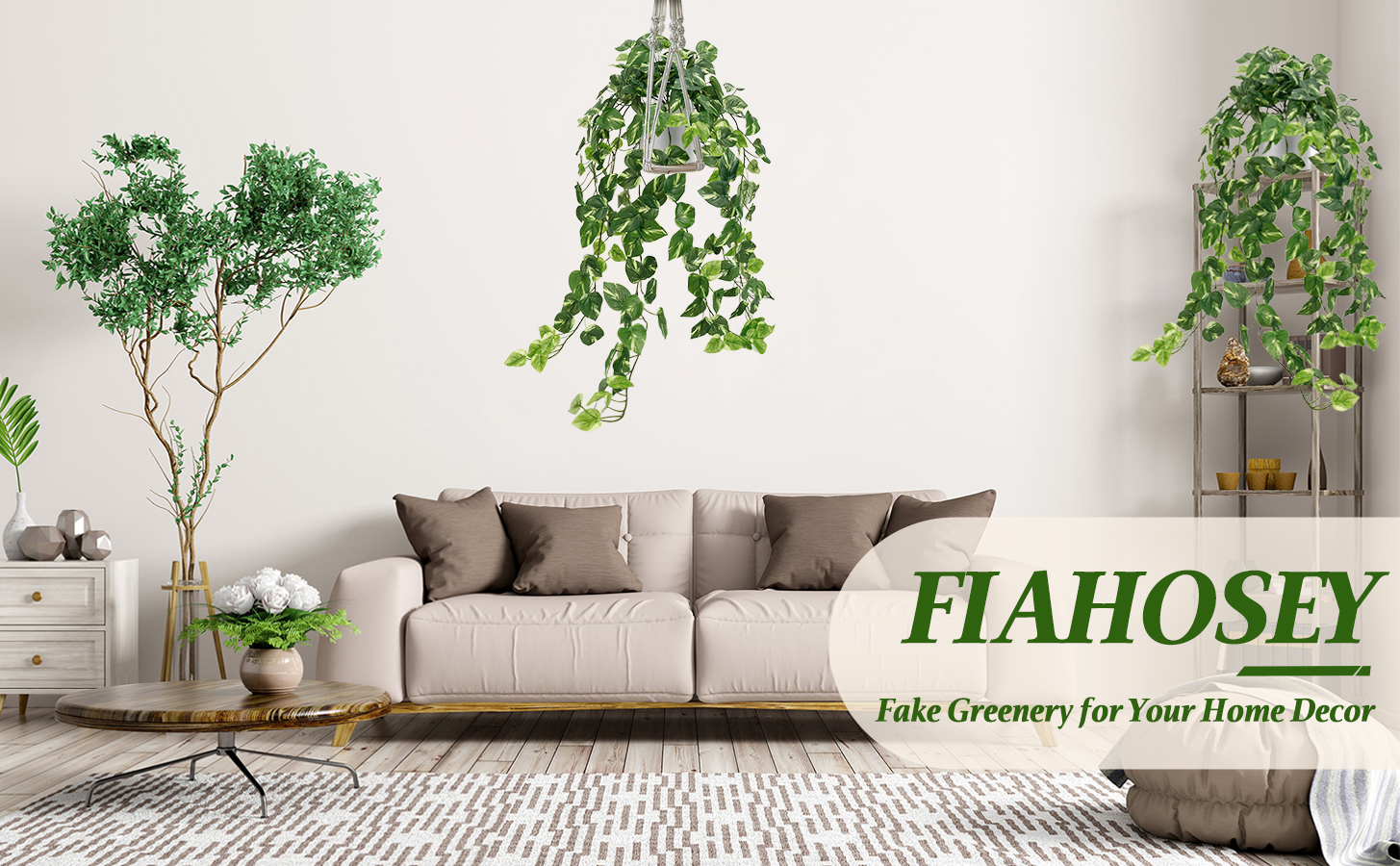 【Premium Material】The pot is made from ceramic in a crisp white finish. Plastic plant has plenty of long branches and dark-green leaves that make it resemble a elegant decorative greenery. Faux stones lend plant an even more realistic look