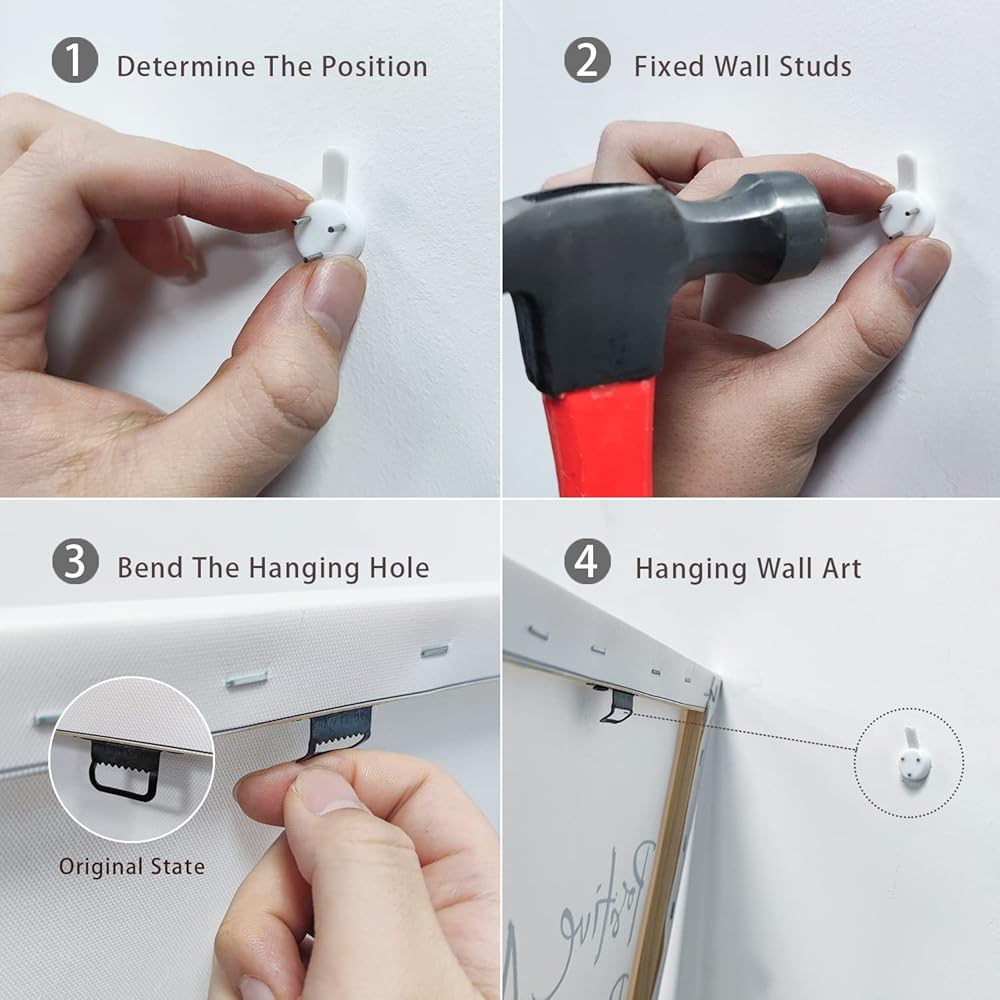 INSTALL: Each front canvas quote print has been stretched on a wooden frame with hooks and accessories for stability and light weight for easy hanging.