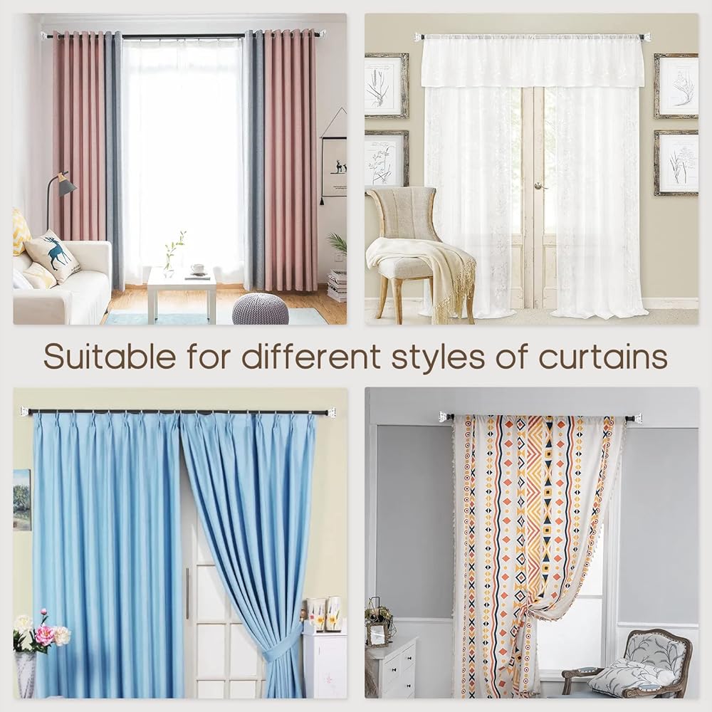 💪Adjustable Curtain Rod - With telescoping structure,this single window treatment rod can extend from 66 to 120 inches,which is easily adjusted to fit a variety of window sizes and well adapted for your living room, bedroom, dining room, kitchen.