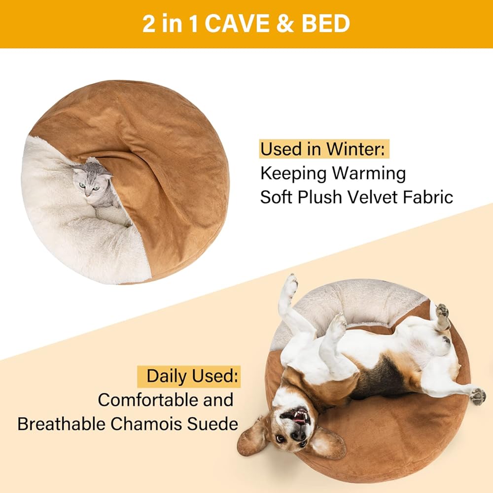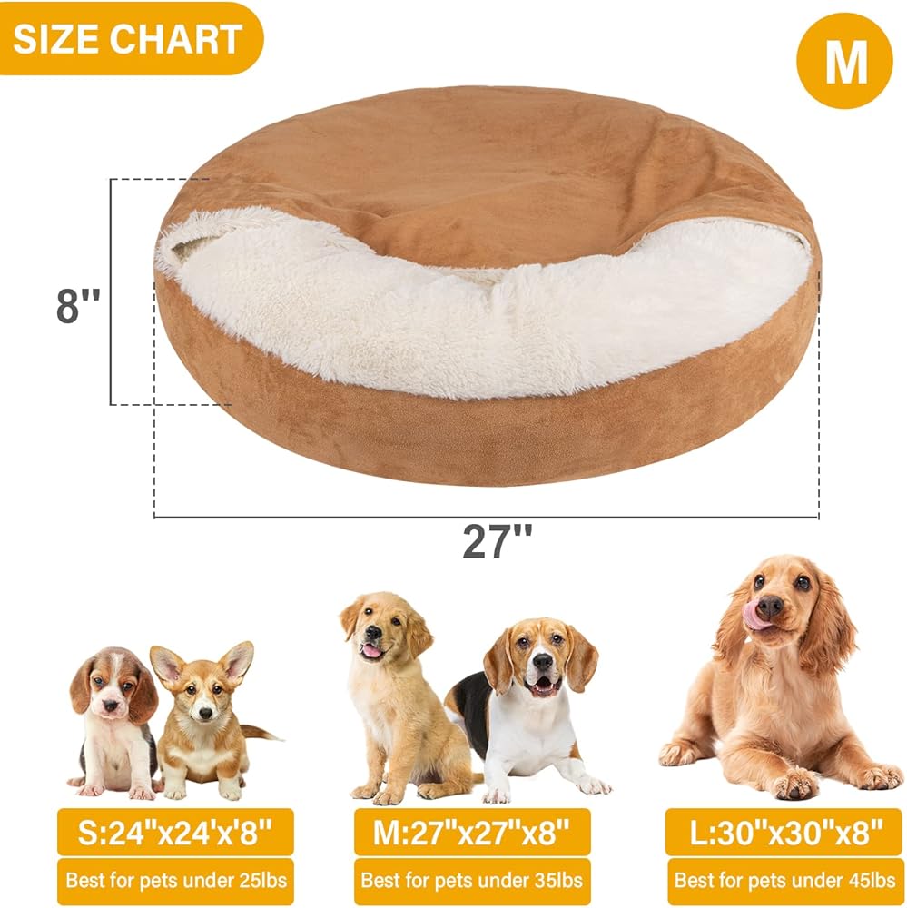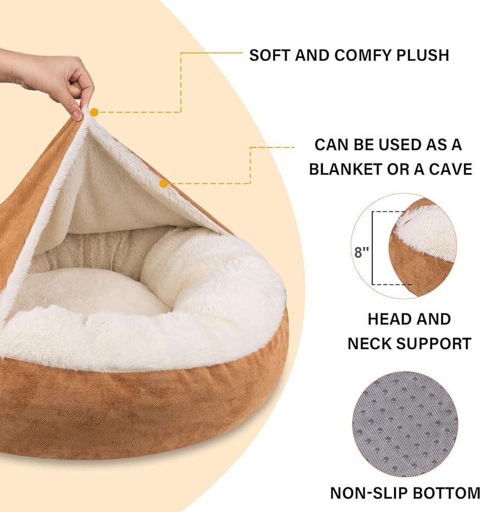 🐾 [Size Options] Small pet bed 24" ideal for small dogs cats rabbits, up to 25lbs; Medium cave dog bed 27" ideal for medium dogs cats, up to 35lbs; Large hooded dog bed 30" ideal for medium/large dogs , up to 45lbs;