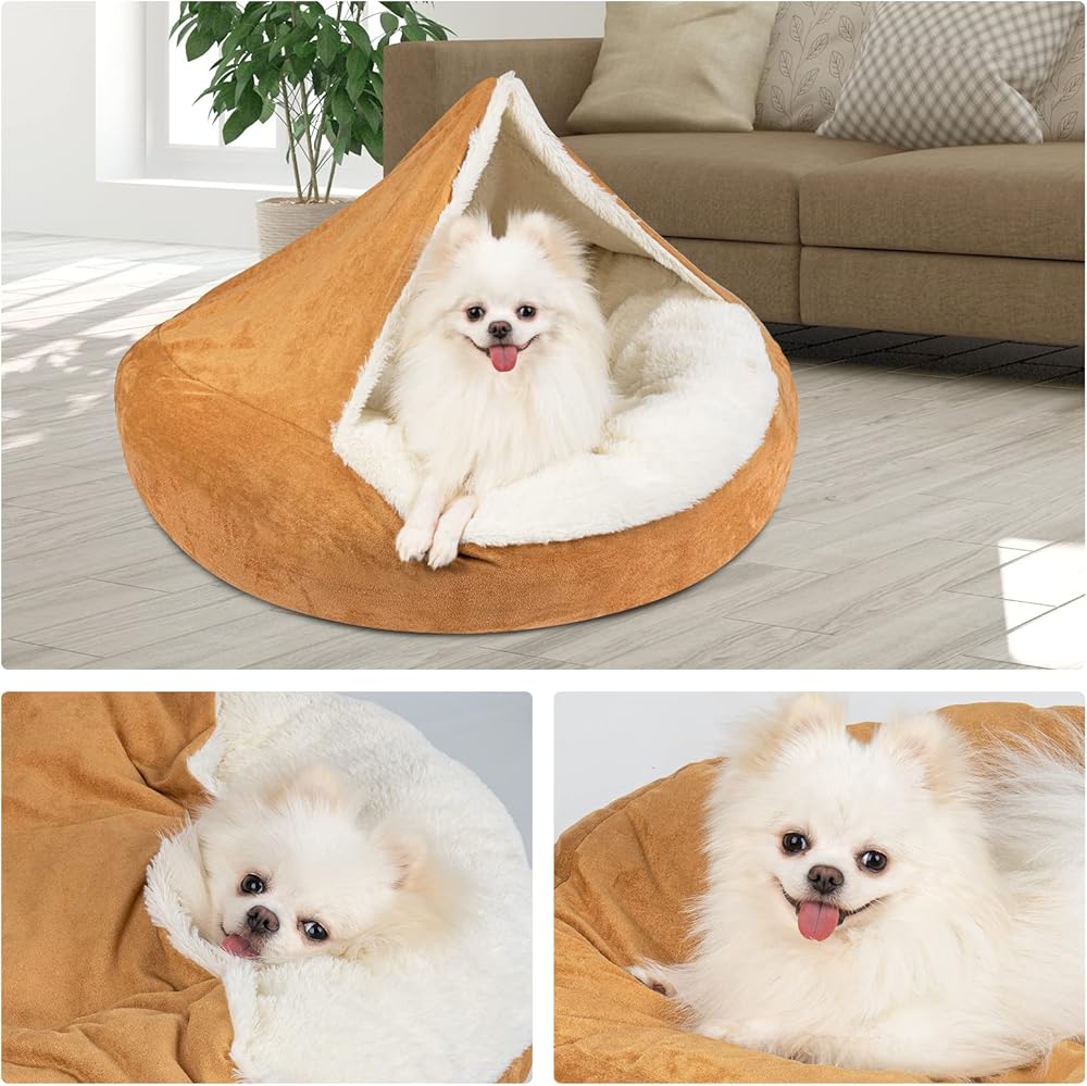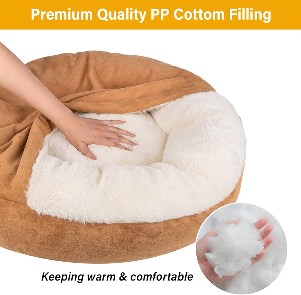 🐾 [Dog Cave Bed with Hooded Blankets] MICOOYO calming dog bed with an connected blanket hood providing burrow or nestle, perfect for calming, anti-anxiety kitten or puppy;