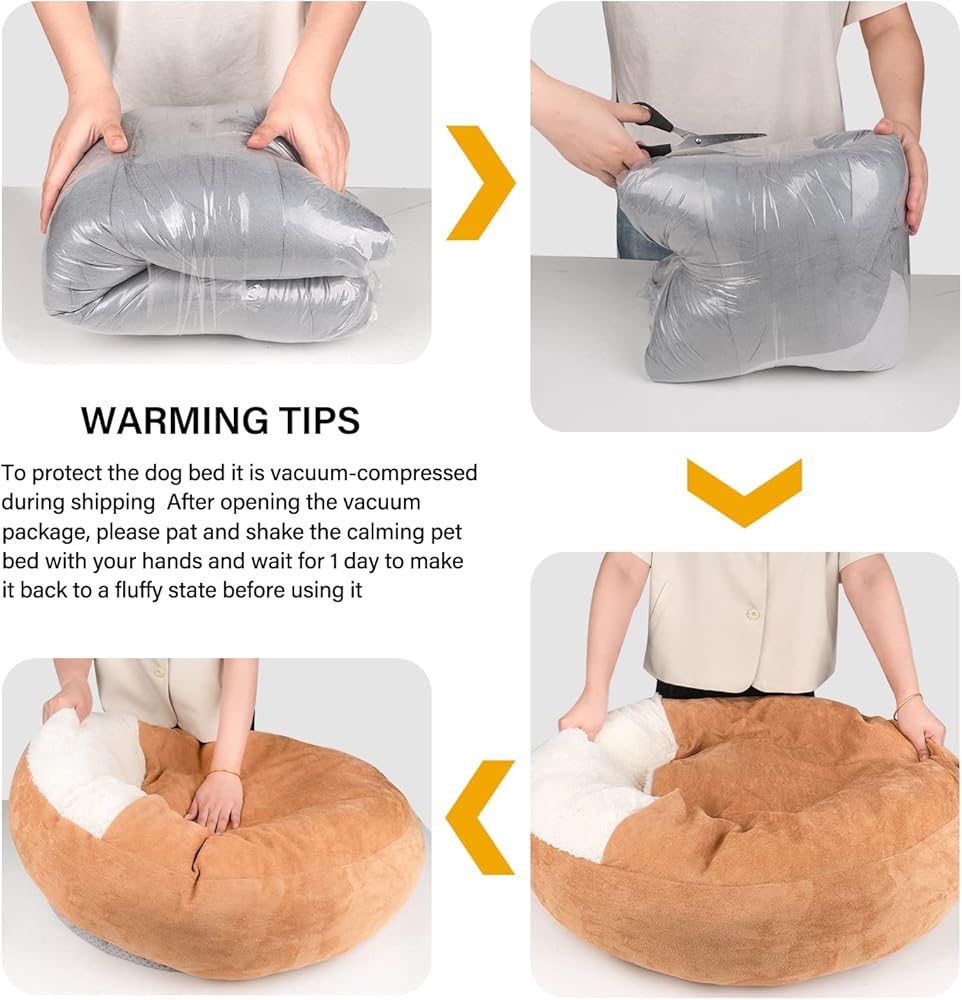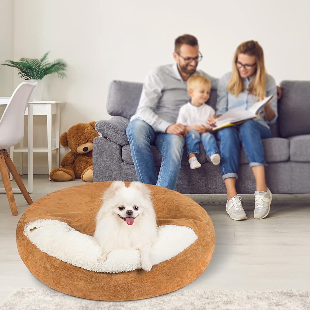 🐾[Soft Donut Dog Bed] Round shape cat beds' filling pp cotton increased by 50g than before, perfect for indoor cats puppies like to snuggling cuddlering; surrouned by cushions great for head neck supporting and deep sleeping;