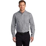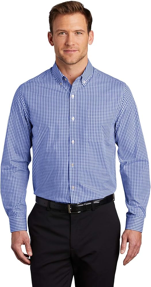 3.1-ounce, 60/40 cotton/poly; Bias-cut details; Button-down collar; Pearlized buttons; Back box pleat; Left chest pocket; Mitered adjustable cuffs