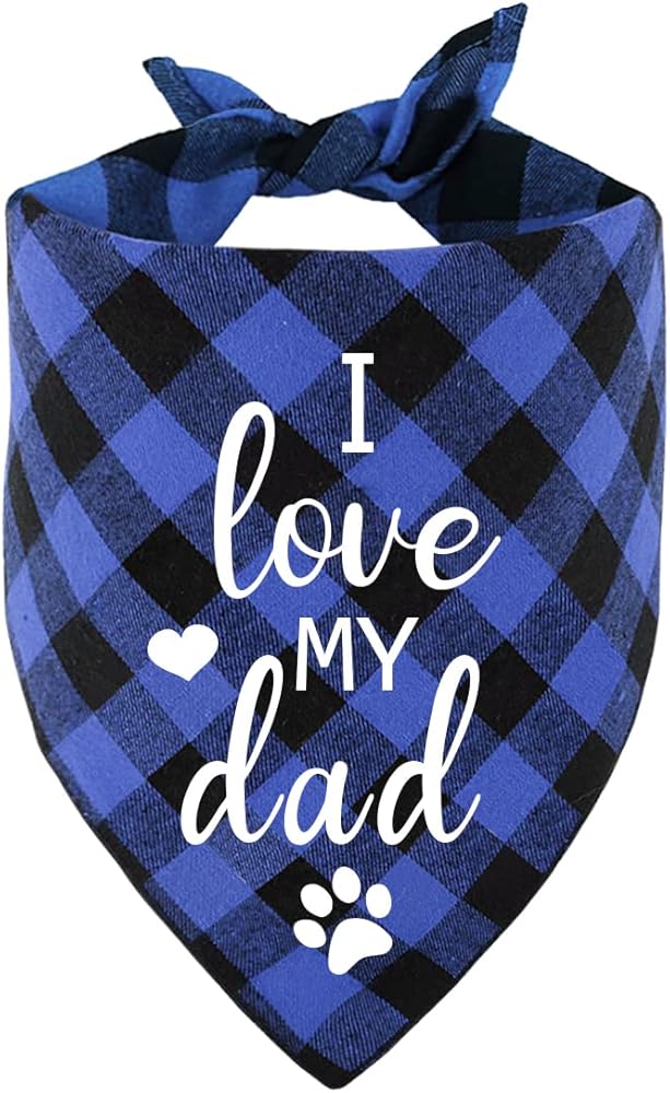 Funny I Love My Dad Blue Plaid Cotton Pet Dog Bandana, Gender Revealing Photo Prop Pet Dog Bibs Accessories Birthday Wedding Party Gift for Dog Lovers Owner