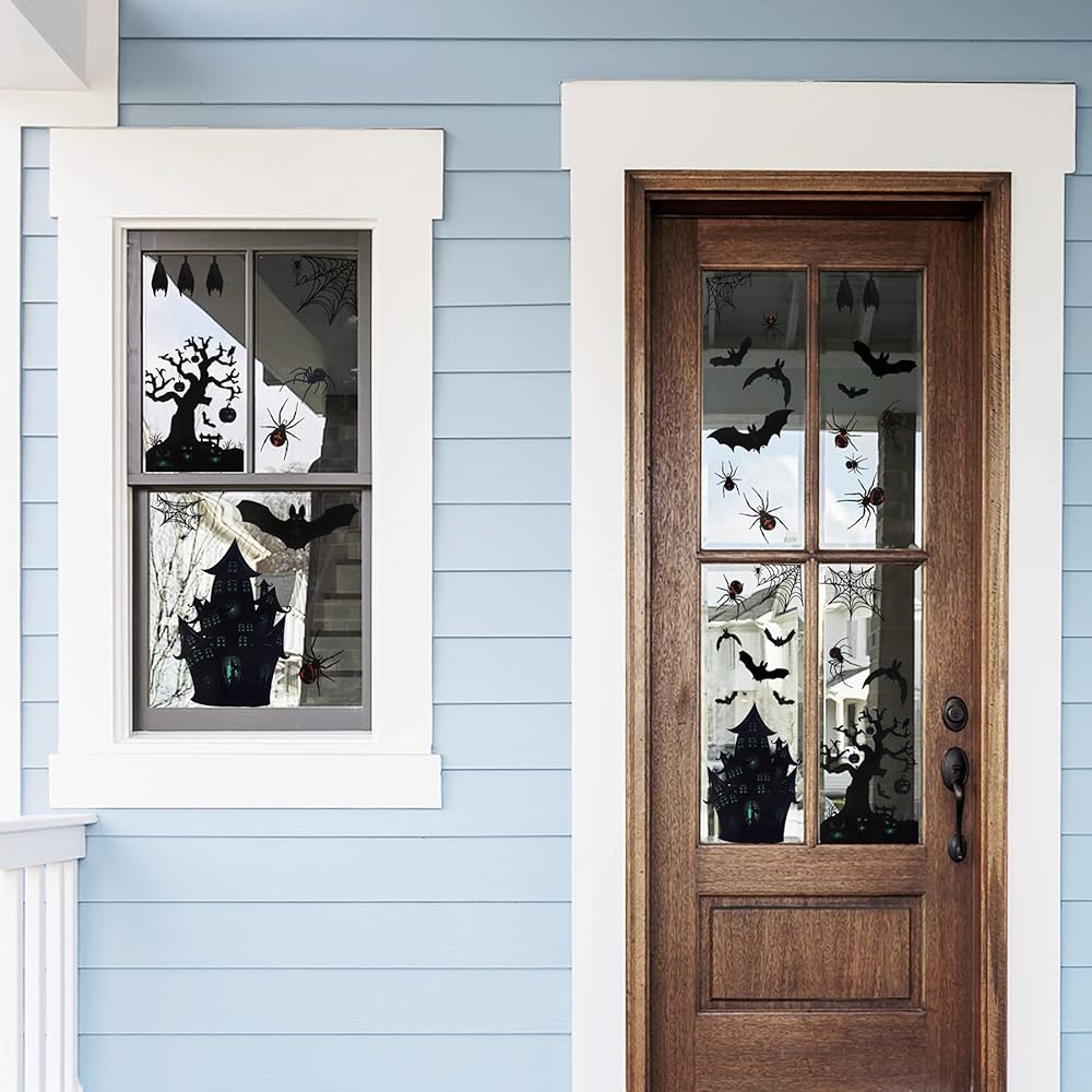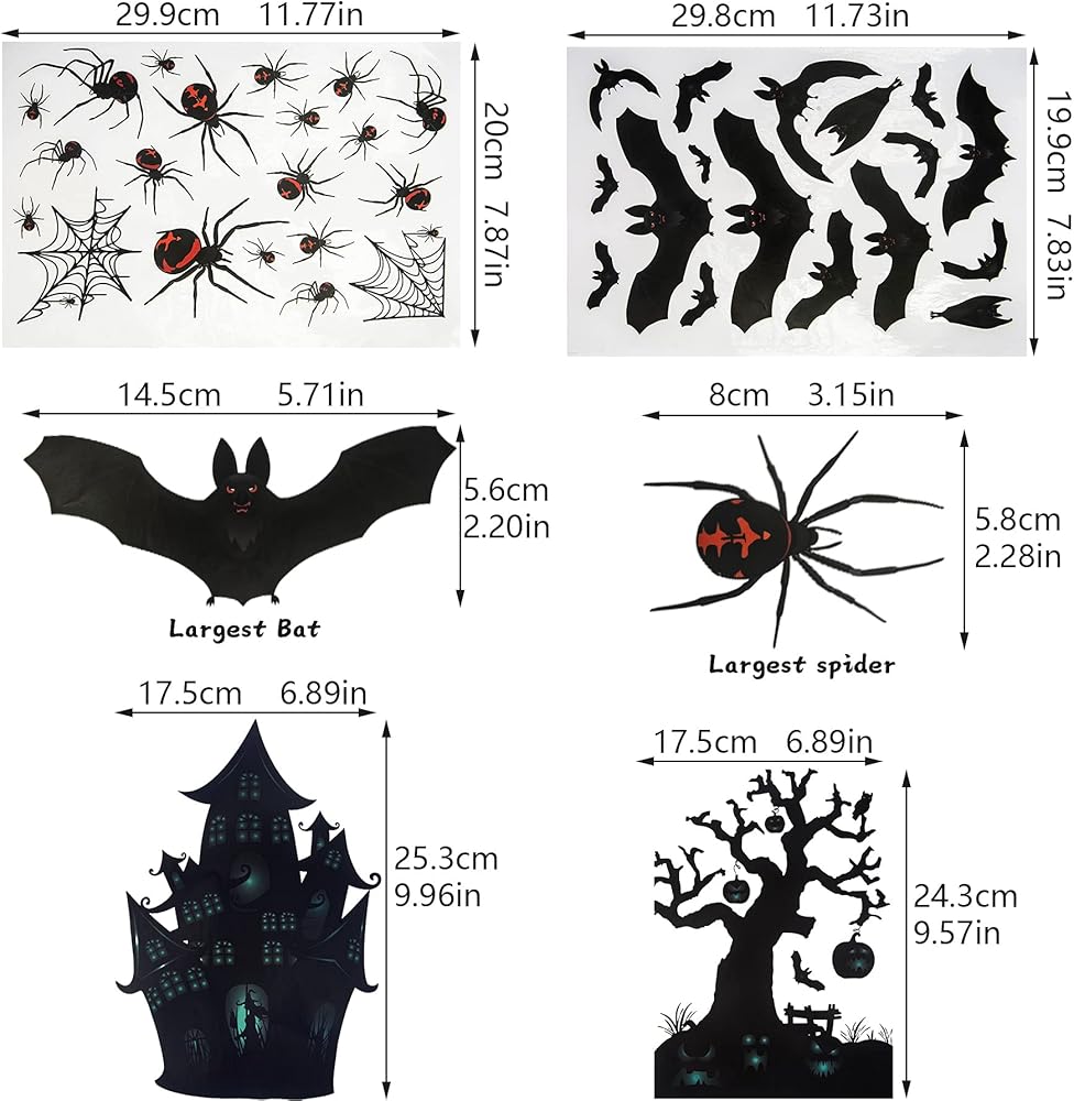 🕷️【Spooky Designs】🕷️:Halloween decals contain many classic scary patterns, such as castles, dead trees, pumpkins, spiders, webs, bats, etc, suitable for adding a spooky and scary atmosphere to your Halloween party