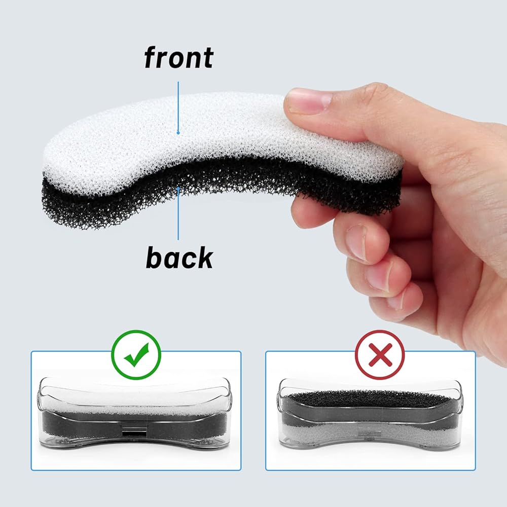 Arc-Shaped Filter: Our arc-shaped filters is 4.5 inches long, 2.25 inches wide and about 0.75 inches thick. Made of high-quality water purification filter cotton, which attaches activated carbon and resin.To prevent the activated carbon dust from shedding into water, please soak the cat fountain filter in water for 10 minutes then rinse thoroughly under running water before using.