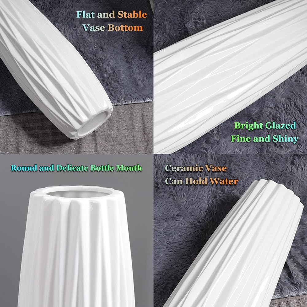 【FLOWER VASE 24" TALL 】The overall size of this vase is 61(H)×15.5(D)cm/24"×6.1". The diameter at the widest point of the bottle mouth is about 11.5cm/4.5". The ceramic vase is placed in a fully wrapped thick plastic foam and shockproof cardboard box packaging to avoid damage during transportation. Thank you for your understanding and support!