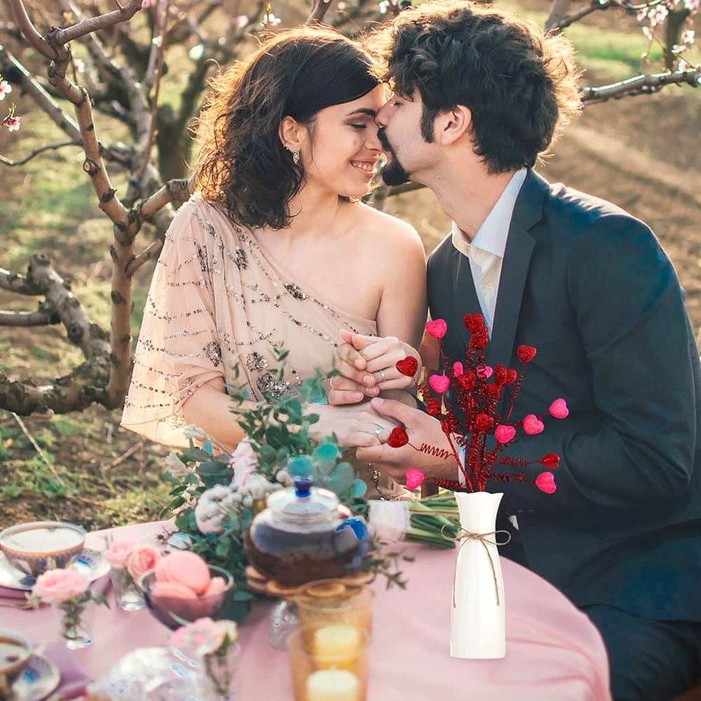 6 Pieces Valentine's Day Picks Sprays Heart Artificial Branch Picks for Valentine's Day Decoration Wedding Home Decoraton (Red & Pink)