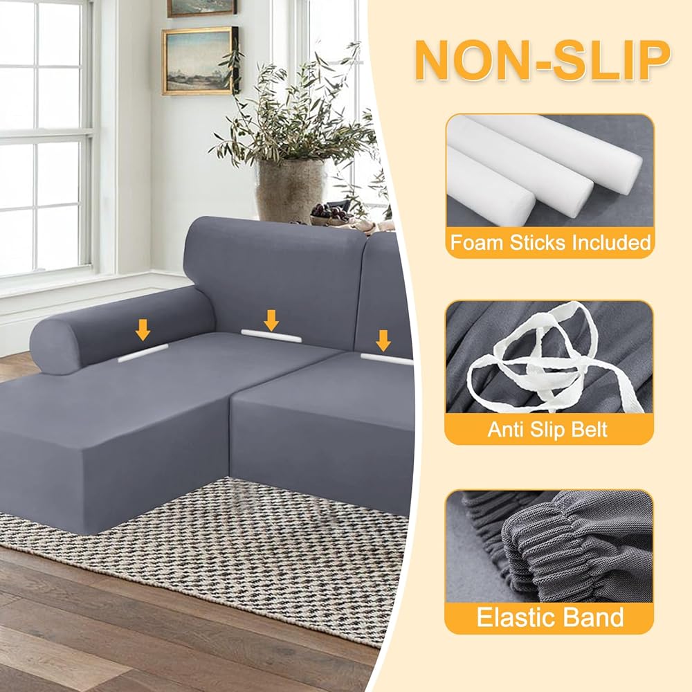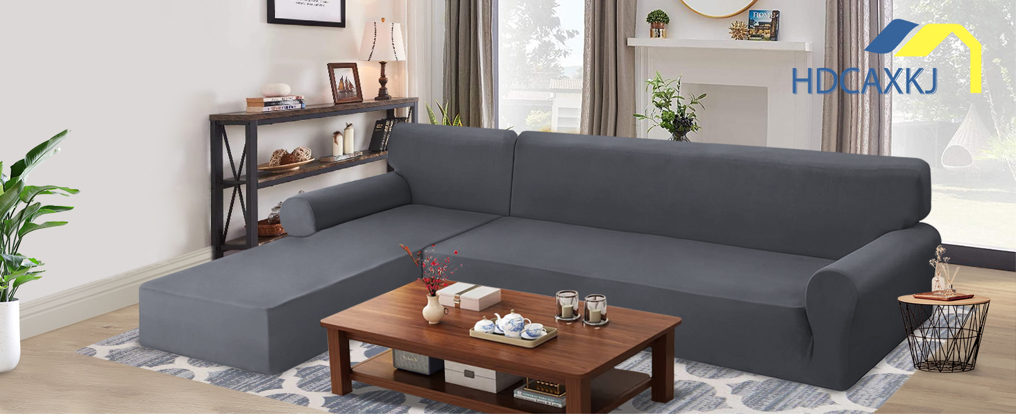 Stretchable and Elastic Fabric: The sectional couch covers l shape made from high density polyester and spandex fabric, this l shape sofa cover offers exceptional elasticity. It can effortlessly wrap around the entire modular sectional sofa, providing a snug, wrinkle-free fit