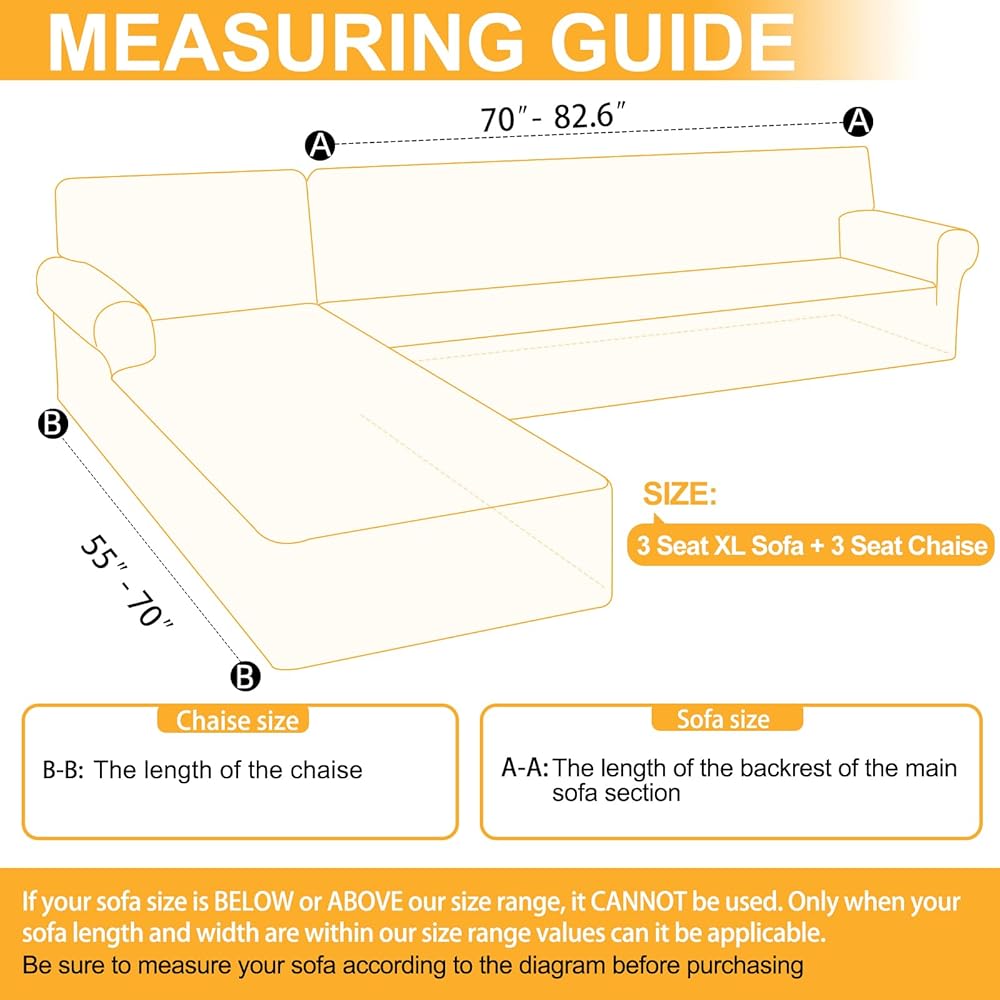 Full Protect: These l shaped sectional slipcovers are specially designed for L-shaped couches with the chaise on either the right or left side. The set includes two pieces - one for the chaise and one for the main sofa - ensuring a perfect fit and provides 360-degree coverage. Cover stains, imperfections, dust, cat scratches, and dog hairs from everyday living