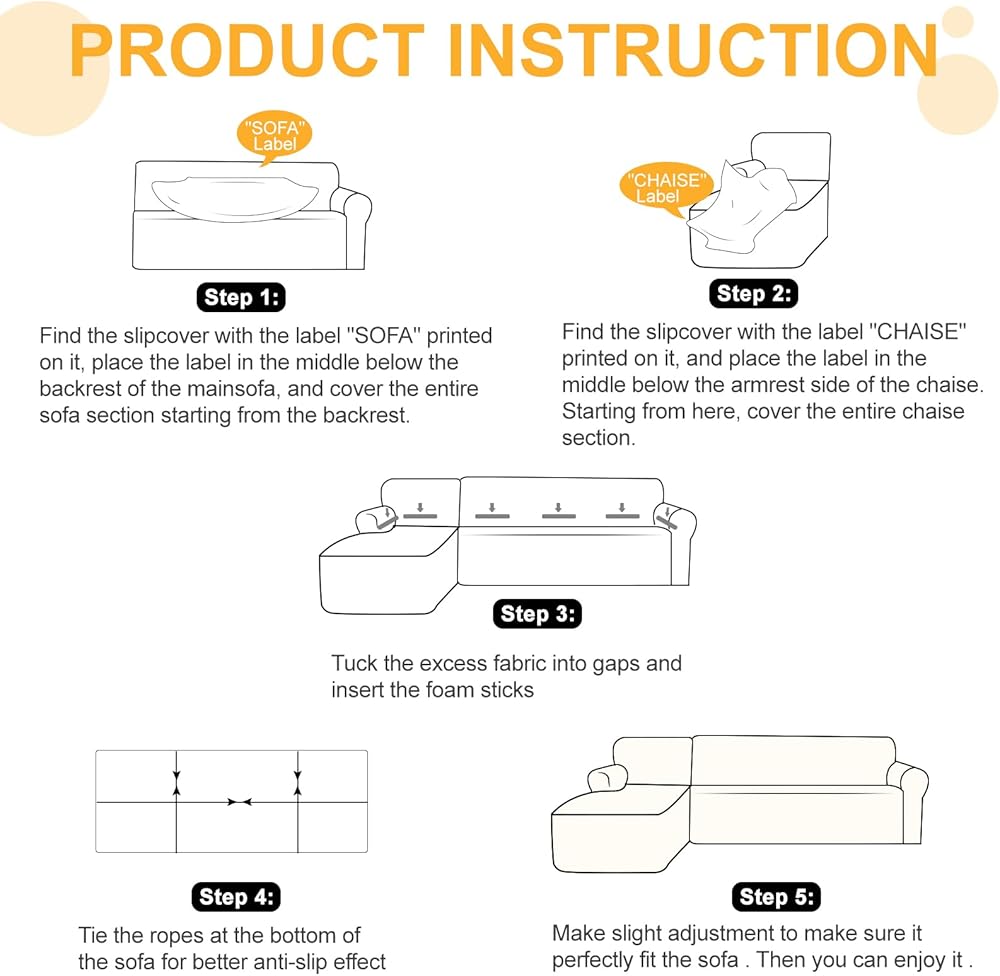 Easy Installation and Care: This fitted slipcovers for sectional sofas machine washable in cold water on the gentle cycle, but do not use bleach. Line drying is recommended, and tumble drying and ironing should be avoided