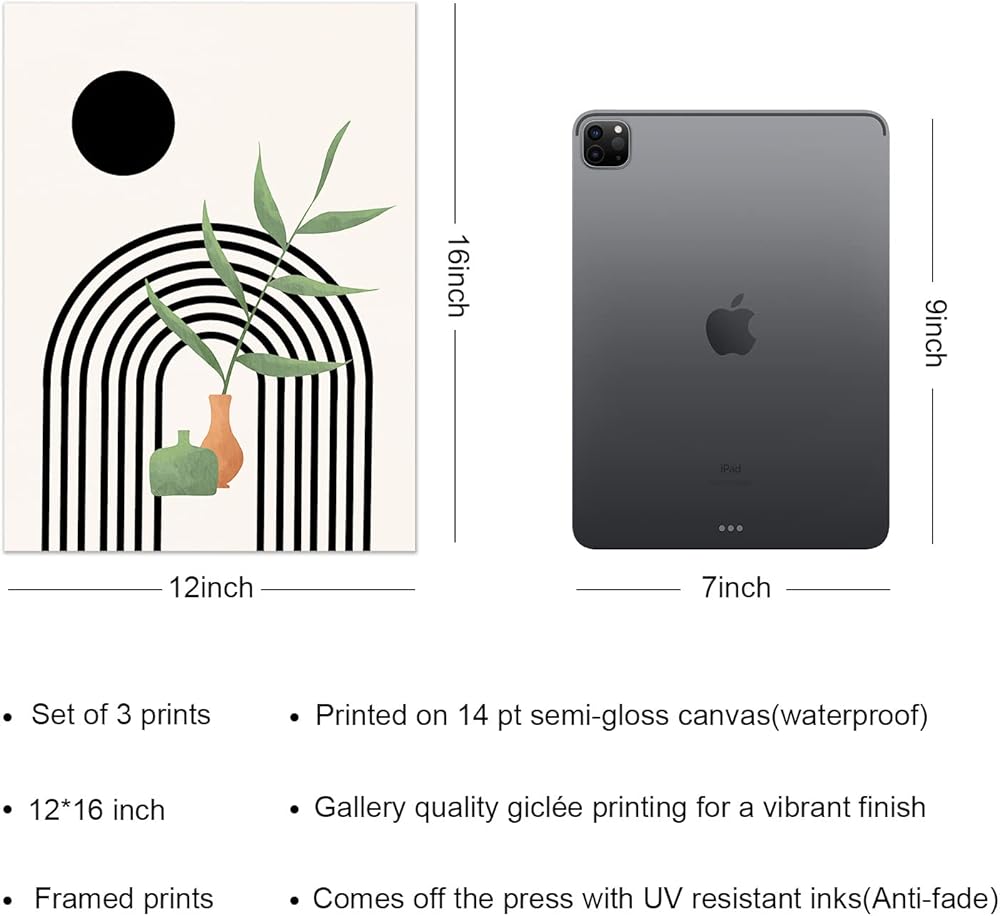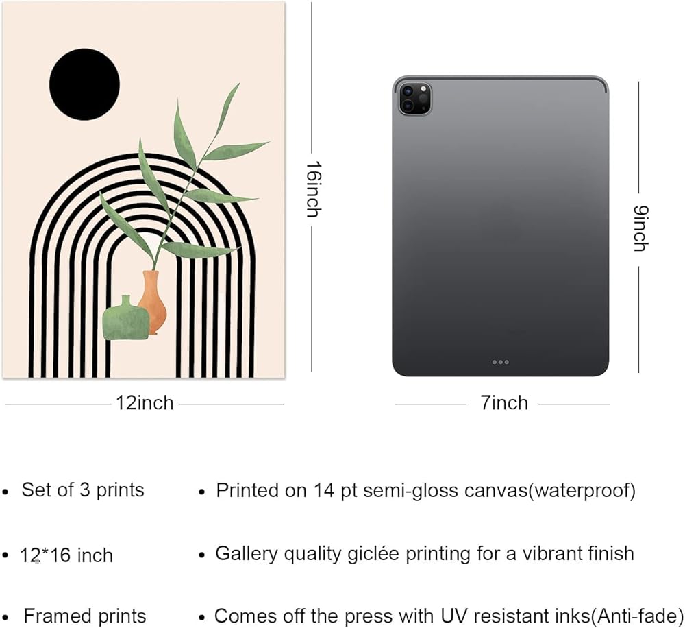 【لوحة فنية جدارية على القماش】مطبوعات فنية جدارية على القماش بوهو (مؤطرة) مقاس 12 × 16 بوصة * 3 قطع (30 × 40 سم × 3 قطع). تأتي مع مجموعة تعليق، كل ما عليك فعله هو قياس حجم الحائط وتعليق المطبوعات الفنية عند وصولها