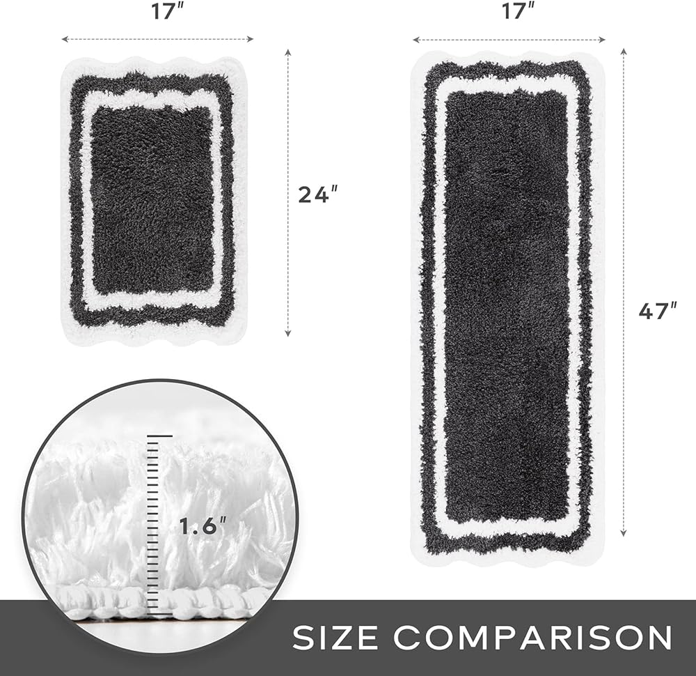 【Design & Size】The top of the bathroom rug adopts a unique back-shaped design, set of 2 bath mat can meet the needs of different spaces, adding a stylish atmosphere.