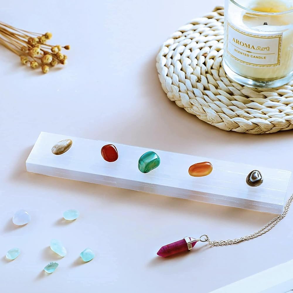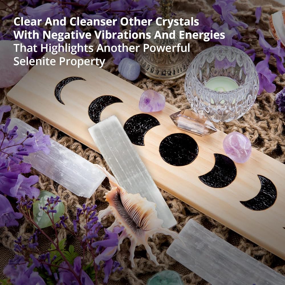Selenite Crystal is a very powerful demagnetizing stone, an excellent candidate for auric field clearing. A powerful demagnetizer of the auric field, Selenite gets rid of all the negativity, fear, pain, stress, heartache, or worry. Hold Selenite, or keep it nearby, as you visualize this stone removing all the negativity, fear, pain, stress, heartache, or worry. Selenite is effective for clearing and purifying assorted crystals, jewelry, and environments. This Crown Chakra crystal effectively cleanses and releases negativity that is present within the space, inviting peace and serenity, deepening the feeling of belonging, and revitalizing and strengthening connections to others. What does the Selenite Ruler do? This stone is believed by people today to ease anxiety, calm nerves, and help with tapping into the healing practices of each chakra, then the Third Eye and Crown Chakra at the crown of the head. It is said to address blockage and also encourages deeper meditation. If you love using gemstones, minerals, and other energetic crystals in beauty routines and therapeutic work, try the selenite items by the WBM Selenite Rulers as a productive way to use and charge them up! You can also use them on raw gemstones, acrylic rings, and other special items. The way each one is distinct & hand polished and shaped, see photos for illustrations of how each one is distinct from the other. The mine of Morocco is where Selenite is found; it is cut and polished there.