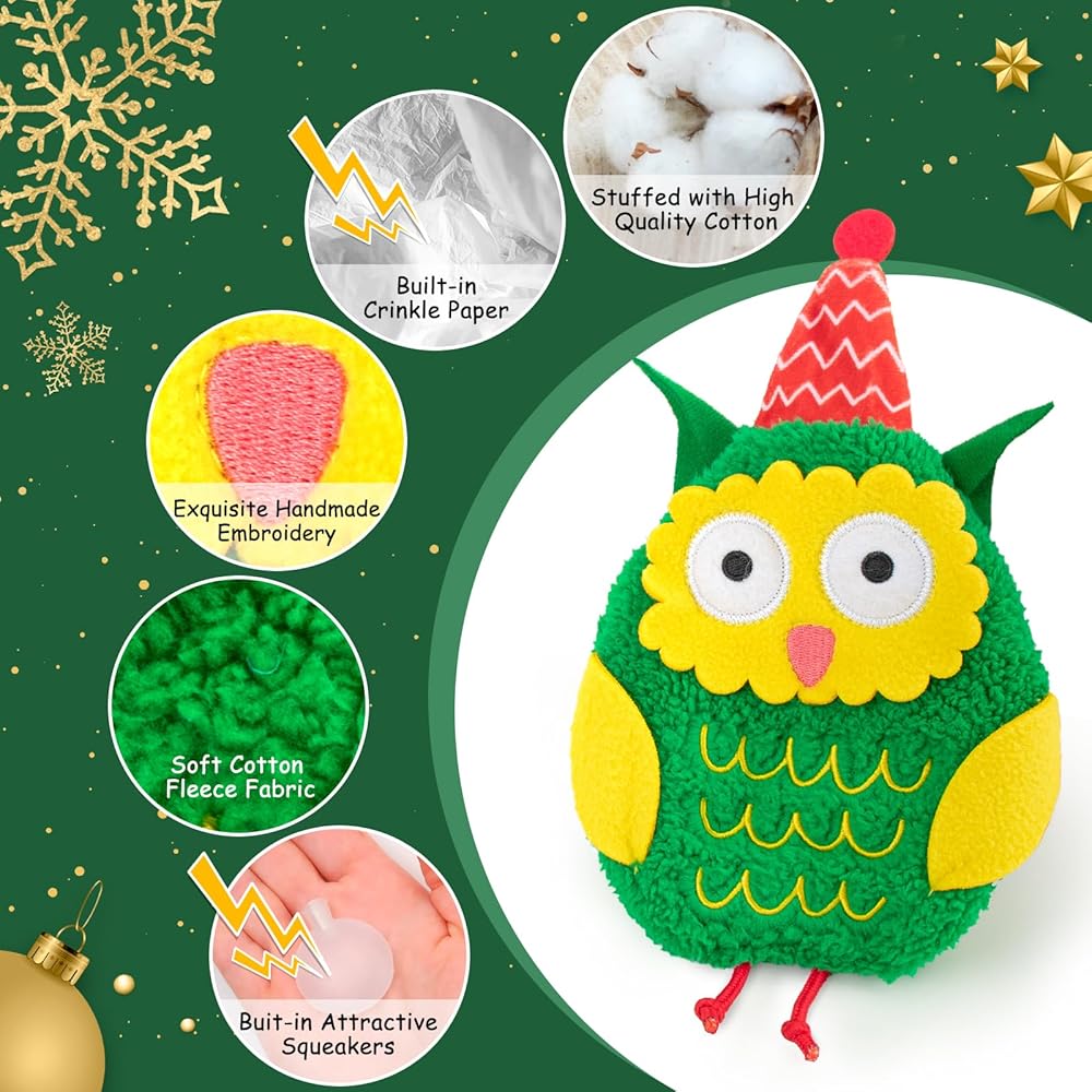 Safe and durable surface fabric, high-quality non-toxic cotton, and a built-in sounder, AWOOF Christmas dog toys is a great choice for dog gifts.