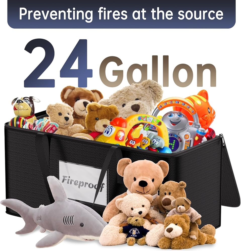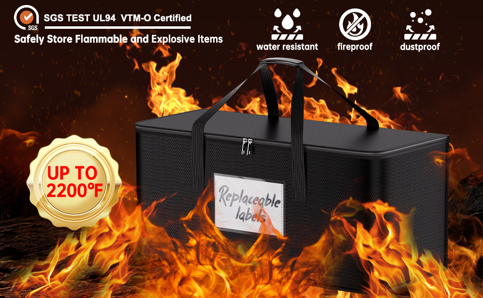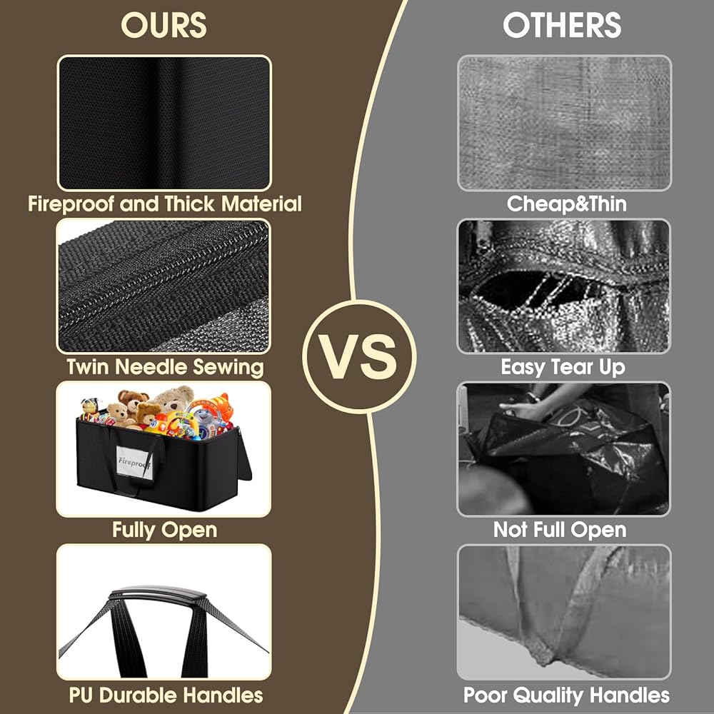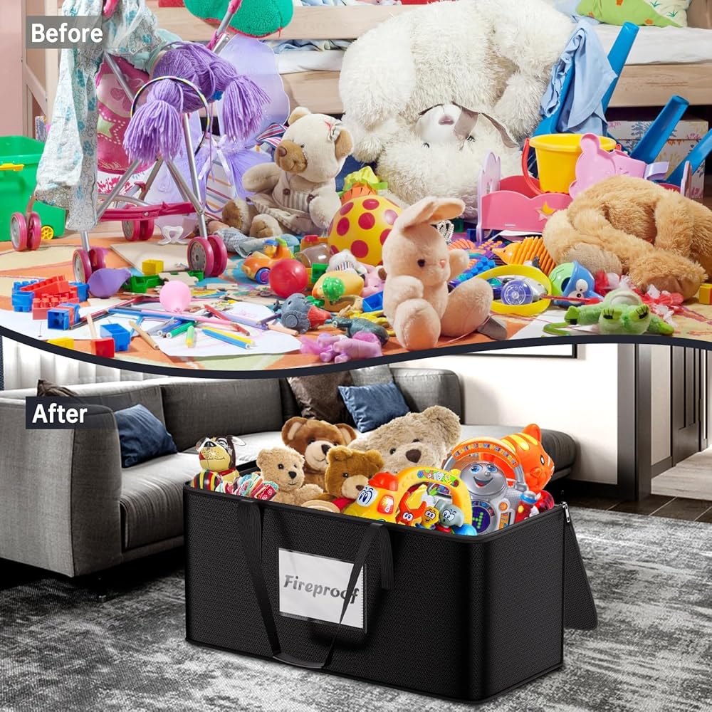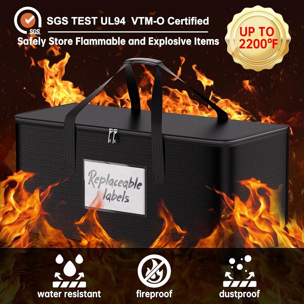 Fireproof Document Bag-28.7"x14.2"x13.9", Extra Large Storage Tote with Handle&Zipper,Foldable Moistureproof Safety Moving Supplies for Important Document,Valuables,Clothing,Travel&Home-Black