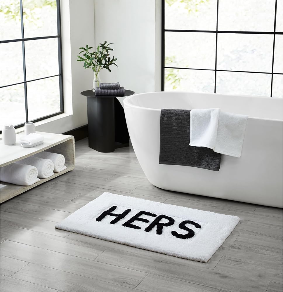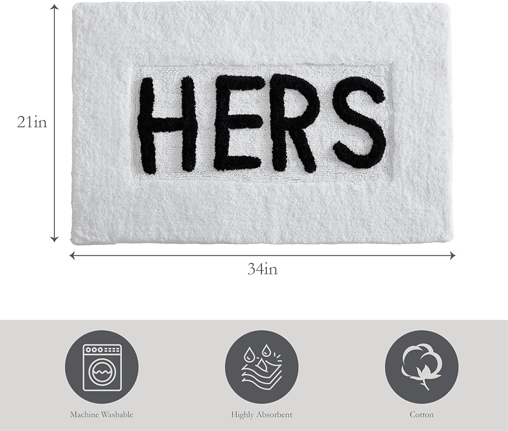 Playfully stylish "His & Hers" Bath Rug Set by Jean Pierre will effortlessly refresh your bathroom décor. Extra plush 100% natural cotton is extremely soft underfoot making these rugs as comfy as they are stylish. These rugs feature looped and high-cut shag fibers that are highly absorbent - perfect for stepping out of the bath or shower. Backing is 100% cotton - rug pad recommended and sold separately. Machine washable, making cleaning a breeze. Imported.