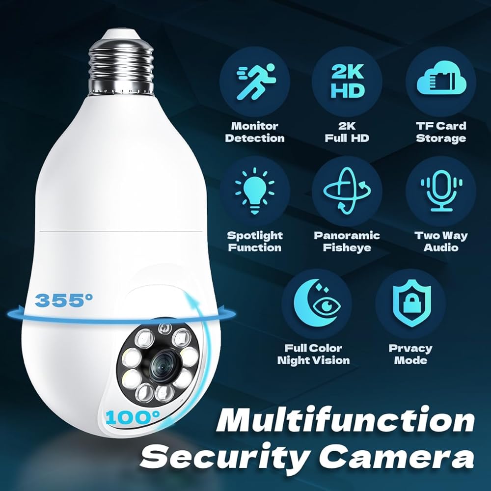 BJR 4MP Light Bulb Security Cameram, 5G & 2.4G WiFi 2K HD Security Camera Wireless Outdoor Indoor 360 Camera for Home with Color Night Vision Motion&Siren Alert Auto Motion E27 Socket