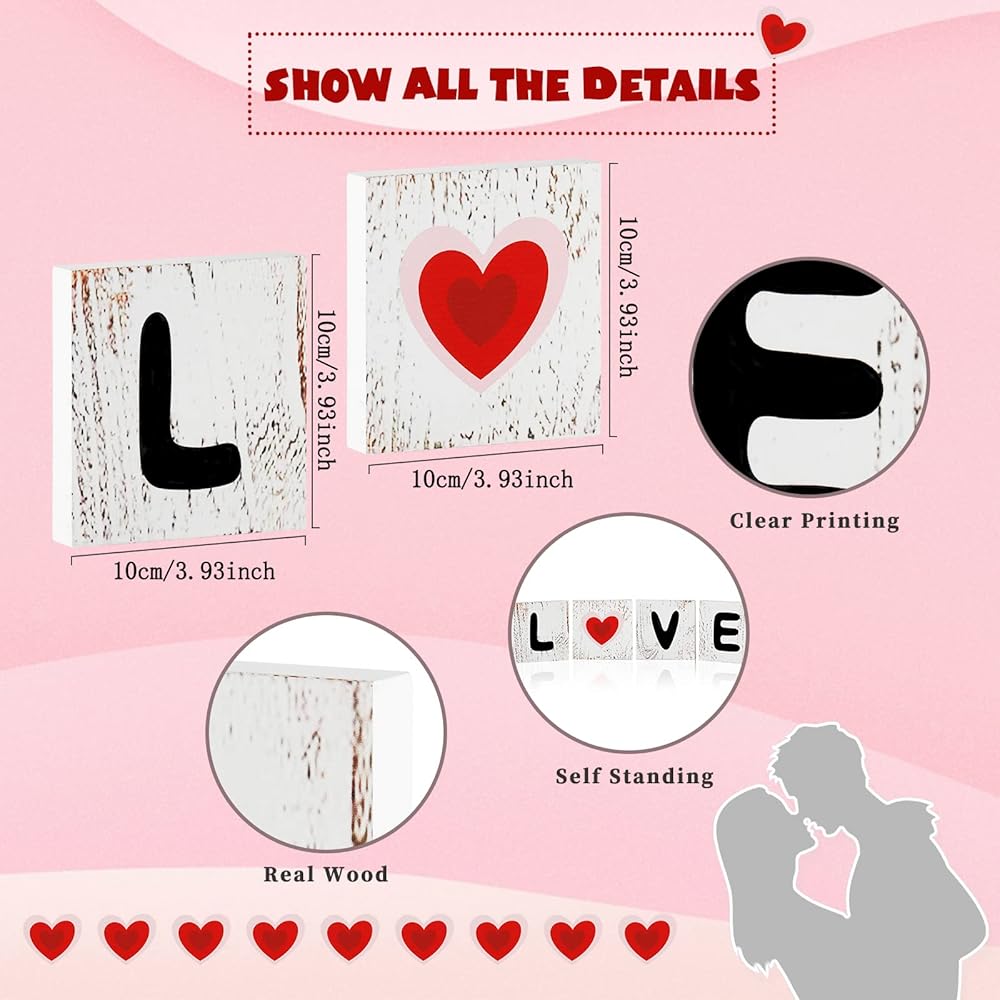 【Premium Real Wood Material】This valentine's day decor is made of solid wooden material, no odor, thick, non-broken and safe to use. Excellent craftsmanship gives this valentines day decoration durability and extends its service life. These table centerpieces decor items can use as the exquisite gift to your friends and family.