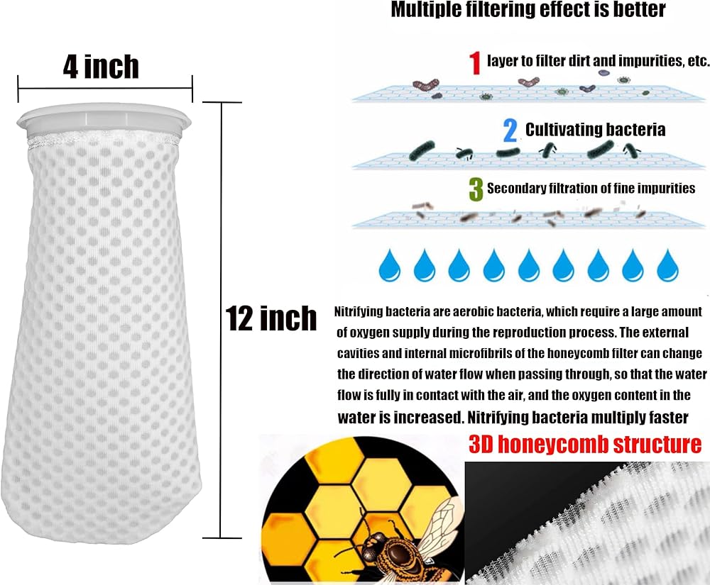 Aquariums Filter Sock Hives are Designed to Divert Water, Mimic The way Bees Build Their Nests, Contrasted with the past Aquarium Felt Filter Bags,are Permeable, Non-Clogging, and Flexible Enough to be Flipped Over for Easy Cleaning