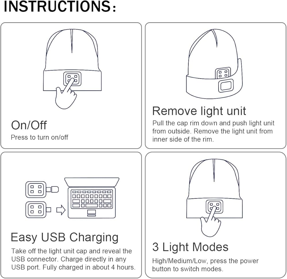 LED Headlamp Hat Lighted USB Rechargeable Hands Free Headlamp Beanie Lamp Replacement