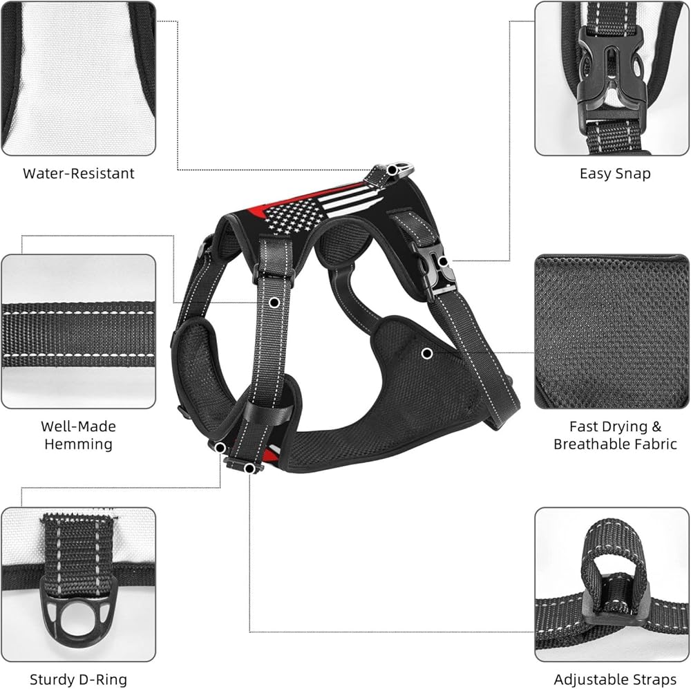 EASY TO USE: This no-pull dog harness has fast-release buckles for easy on and off, Slide the harness over your dog's head, buckle it up, adjust the straps, and here you go! Unique pattern design, it is easy to catch your eye when outdoor running.