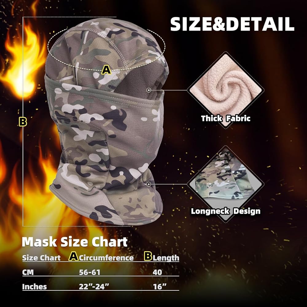 【WIDELY USED】People use this balaclava for hunting, mountaineering, skiing, cycling, fishing, motorcycles, wilderness survival, and more, adding a military color to outdoor activities. It can also be used for military training, providing better camouflage. It is a good idea to share with family, friends, or loved ones during holidays such as Christmas, New Year, Valentine's Day, Father's Day, and Mother's Day