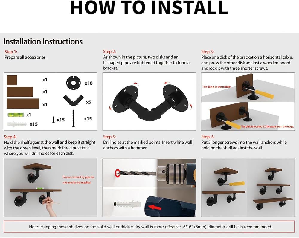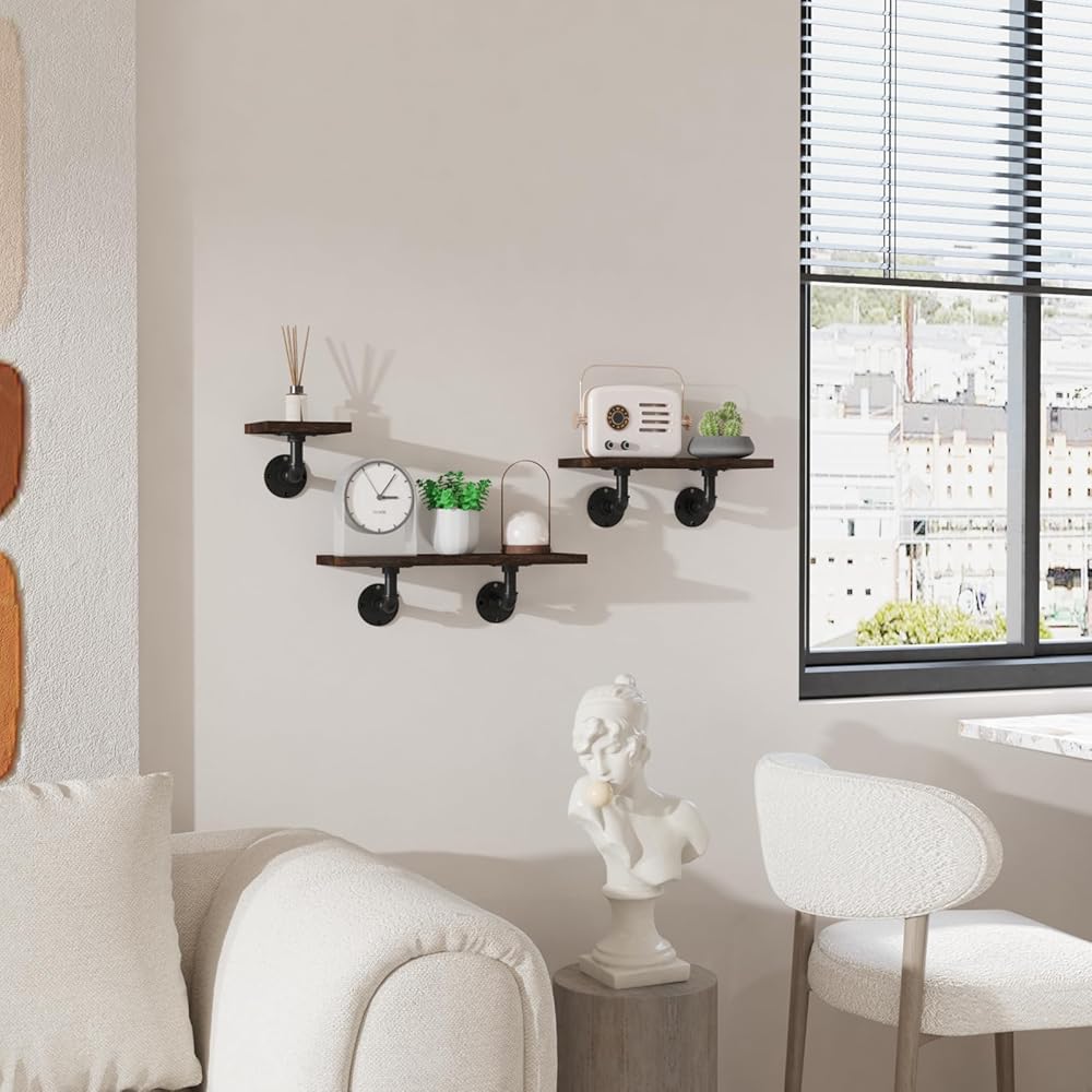 • Robust and Durable: These industrial wall shelves are crafted with rustproof metal brackets and high grade wood, ensuring long-lasting durability. Its L-shaped pipe design enhances its stability, making it capable of withstanding the test of time.