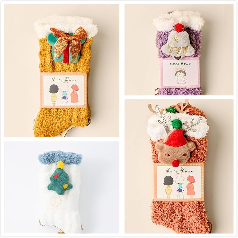 【Handmade and Cute Cartoon Design】 - The gift box contains 4 pairs of socks that are handmade, with a cute cartoon design, making them not only practical but also stylish. The cartoon animal design also adds a touch of fun and playfulness to your outfit.