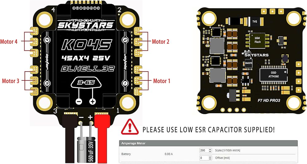 For SkyStars F7HD Pro3 Flight controller and KO60A Blheli-32 32bit 128K 4IN1 ESC fly tower stack