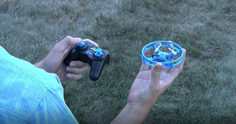 Mindscope Sky Lighter Disc Drone Blue Light Up LED Glow Stunt Action Radio Control RC Technology