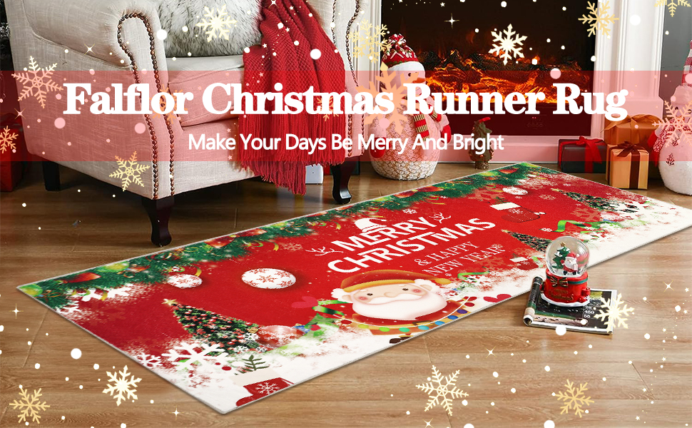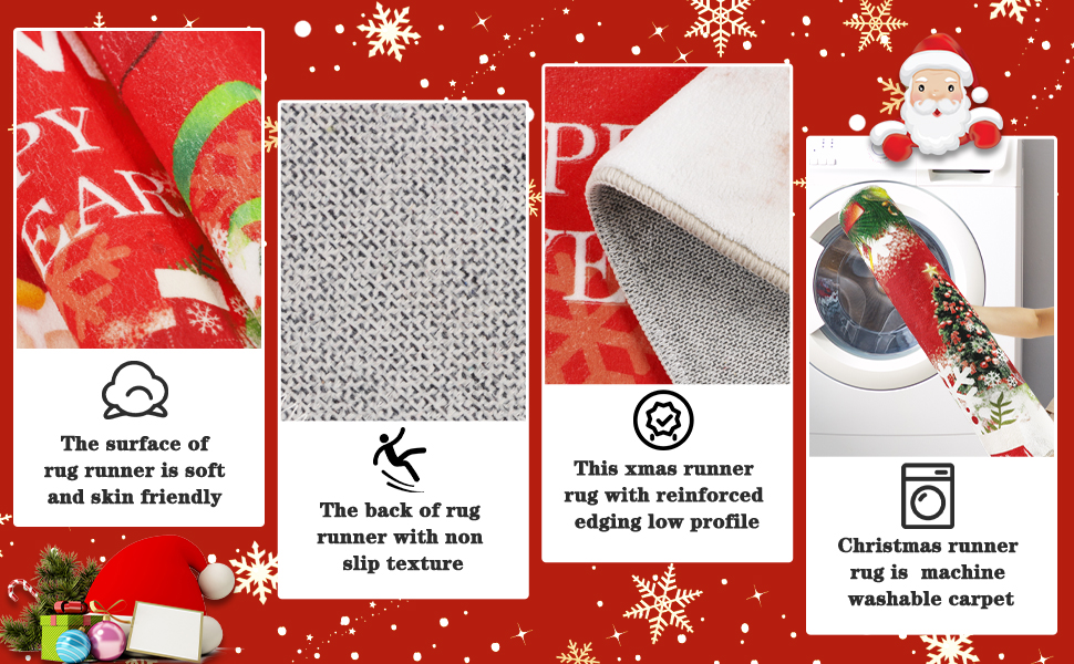 【Non Slip Area Rug Runner】This christmas area rug for hallway with non slip rubber backing, the rubber anti-slip protection texture on the bottom keeps the rug from moving around.Non slip hallway runner rug helps to prevent trips and slips.This anti skid backing helps the long area rug to hold firmly in high traffic places,and makes it not only providing good anti slip properties, but also provide floor protection