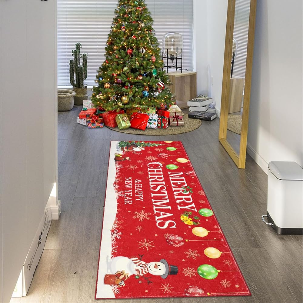 【Easy to Care】This christmas hallway runner rug is machine washable carpet and very easy to clean with a vacuum or spot clean if you choose,saving your time and energy, you just routinely cleaned with a regular vacuum cleaner. For a deep clean, You can toss rug into the washing machine, wash it in cold water and hang it to dry or air dry.This indoor carpet is durable