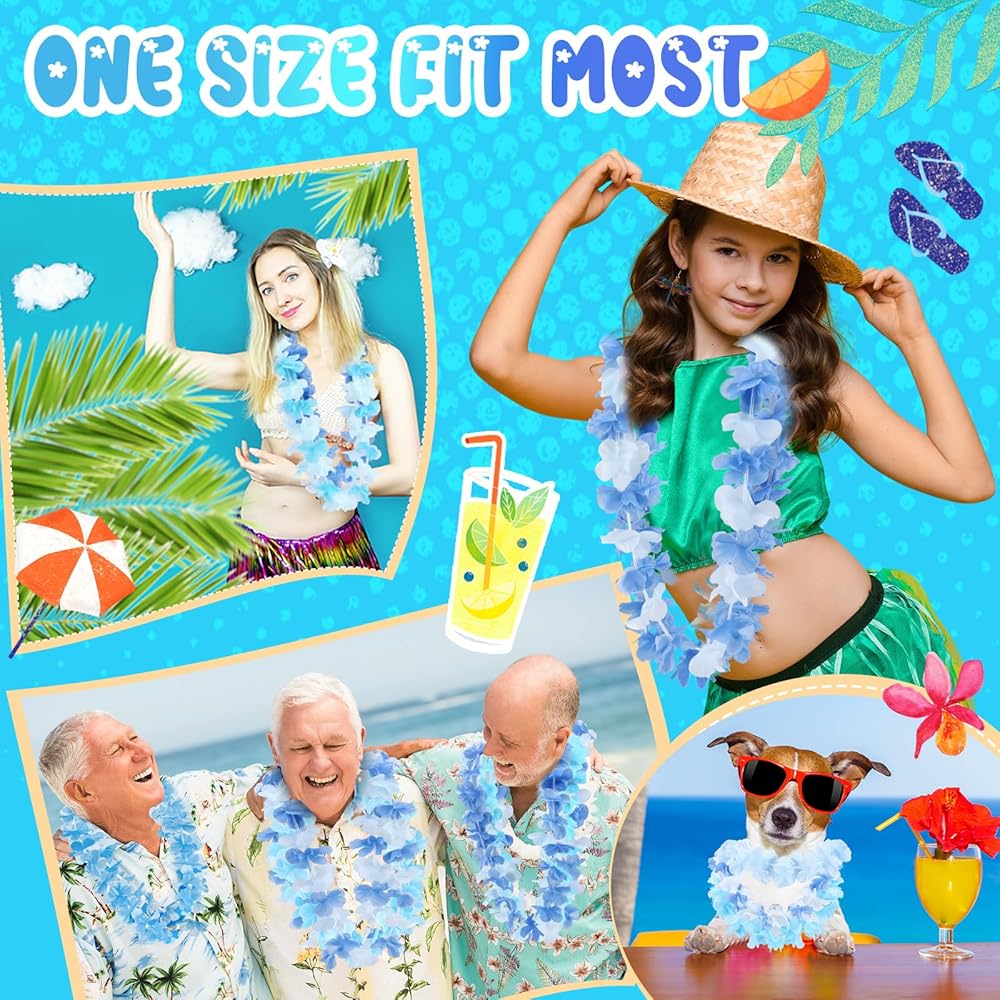 Widely Applicable: luau leis necklaces party favors are great for parties that are themed in summer, Hawaiian parties, beach parties, jungle themed parties, birthday parties, beach and pool party decorations and so on, vibrant colored Hawaiian leis and flower to make your costume stand out and bring the party to life