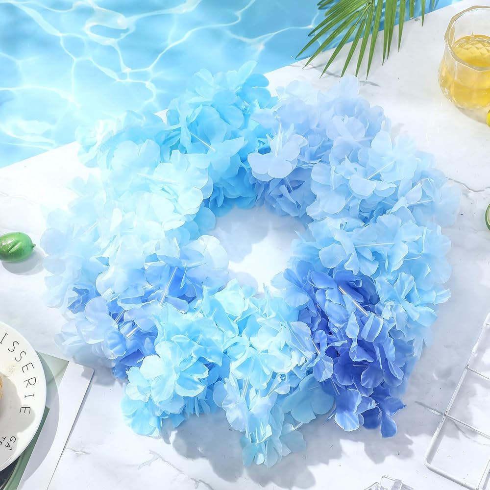 500 Pcs Hawaiian Leis Bulk Luau Leis Necklace Hawaiian Flower Tropical Floral Necklace for Kids Adults Luau Holiday Wedding Beach Birthday Party Supplies Decor Multi Color (Blue)