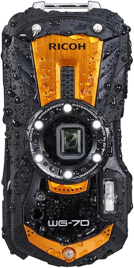 Heavy-duty construction assuring underwater shooting down to 14 meters, for up to two hours The solid, airtight body common to the WG-70 is not only waterproof down to a depth of 14 meters for up to two hours of continuous operation (equivalent to IPX 8 or JIS Class 8), but is also shockproof against falls from a height of 1. 6 meters, dustproof (equivalent to IPX 6 or JIS Class 6), freeze-proof to temperatures as low as -10°C, and crushproof against weights up to 100kgf (kilogram force). Thanks to this heavy-duty construction, the cameras perform superbly and dependably even in harsh, demanding outdoor conditions. 2. Exceptional image quality The WG-70 comes equipped with a back-illuminated CMOS image sensor, which assures excellent high-sensitivity and low-noise characteristics and high-speed readout of image data signals. Coupled with a high-performance imaging engine, this image sensor delivers a top sensitivity of ISO 6400 and super-high-resolution images with approximately 16. 0 effective megapixels. These models also provide advanced image processing functions, made possible by the latest super-resolution technology, to assure sharp, clear, high-resolution images. They even offer such innovative features as Handheld Night Snap mode, which automatically captures several images of the same nighttime scene and produces a single, blur-free composite image from them. 3. Improved usability of Digital Microscope mode