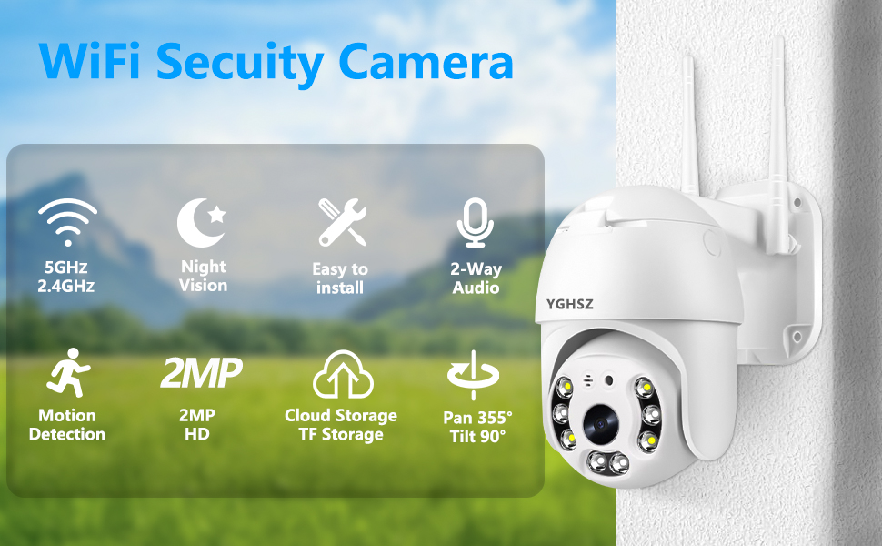 【Dual Band 2.4/5GHz WiFi Camera】Security camera is equipped with resolution 2MP HD images. Upgrade 3dbi antenna to boost wifi signal. The wifi camera supports 5G and 2.4Ghz wifi signals, which is more convenient to install and more stable.❤❤NOTE: This wireless security camera don't need to be connected to a network cable,but NEEDS TO BE CONNECTED WITH POWER ALL THE TIME ! ❤❤