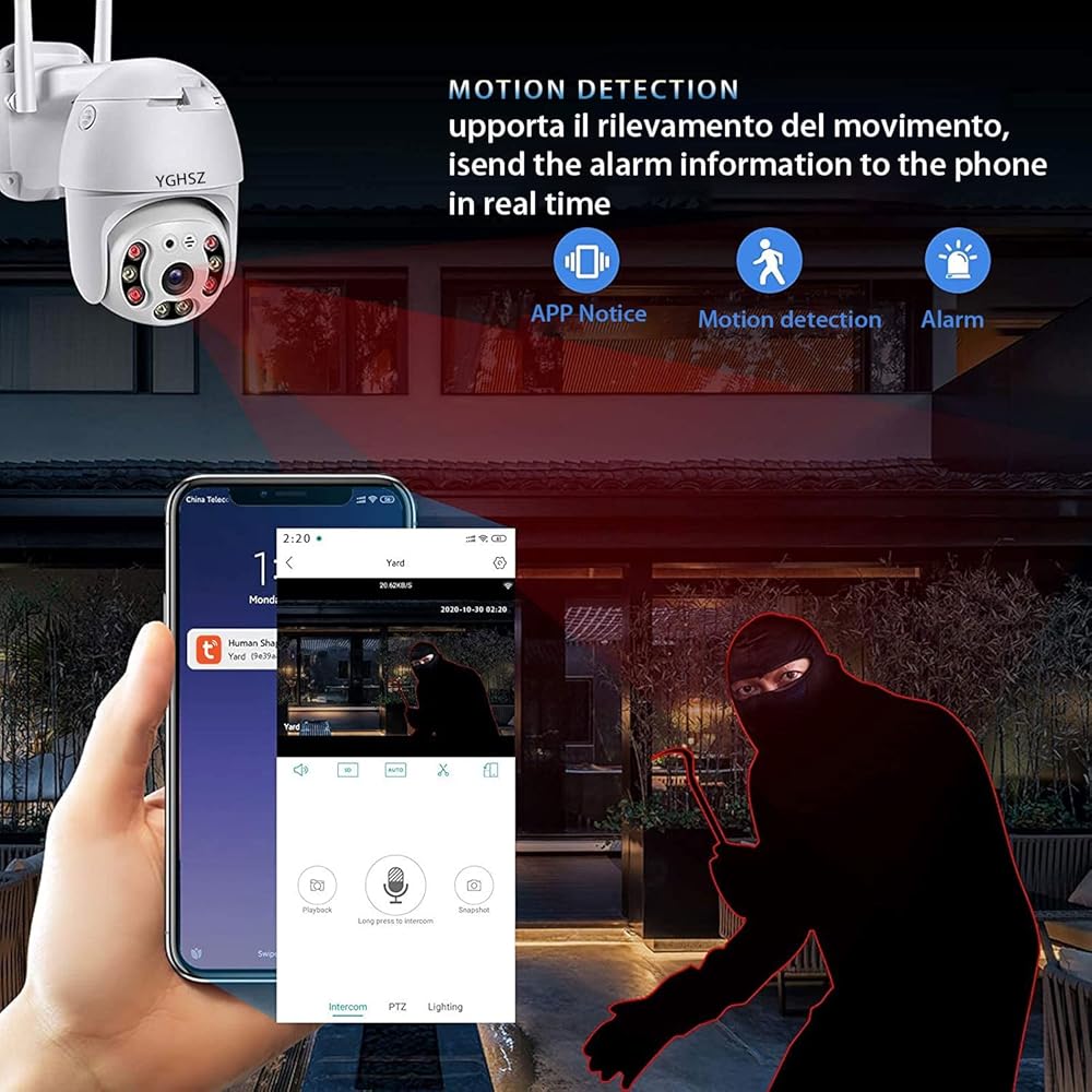 【Intelligent Motion Detection】When the home surveillance camera detects motion, it can immediately send real-time alarm information to your mobile phone. The WiFi security camera supports automatic tracking, when it captures physical activity, it automatically tracks the movement in real-time, so you won't miss important moments.