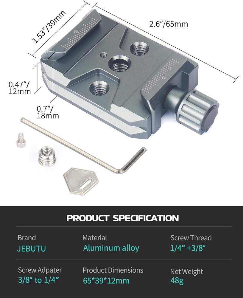 🎬🎬 High Quality & More Durable 🎬🎬 ① JEBUTU quick release clamp is made of high quality aluminum alloy and stainless steel. ② CNC machining and anodizing treatment are adopted to enhance the product texture and strengthen the work intensity and precision, more sturdy and durable, wear-resistant and corrosion-resistant.