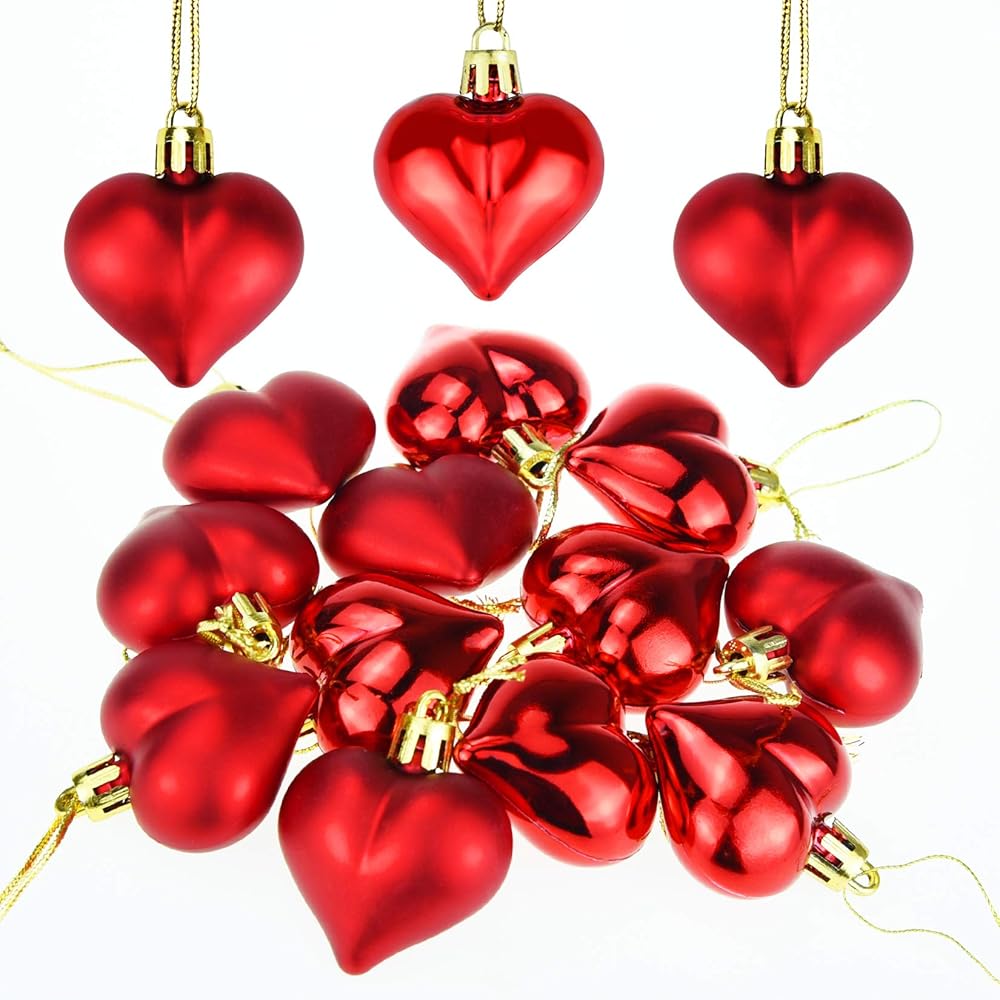 Package Included: 24 pieces heart shaped ornaments, 8 pieces with matt surface and the other 8 pieces with glossy surface, 8 pieces with glitter finish