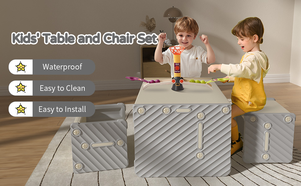 Adapt to Multiple Heights: The table and chair set can be placed in different ways to suit different ages and heights, without the need for time-consuming and tedious disassembly and repeated installation.